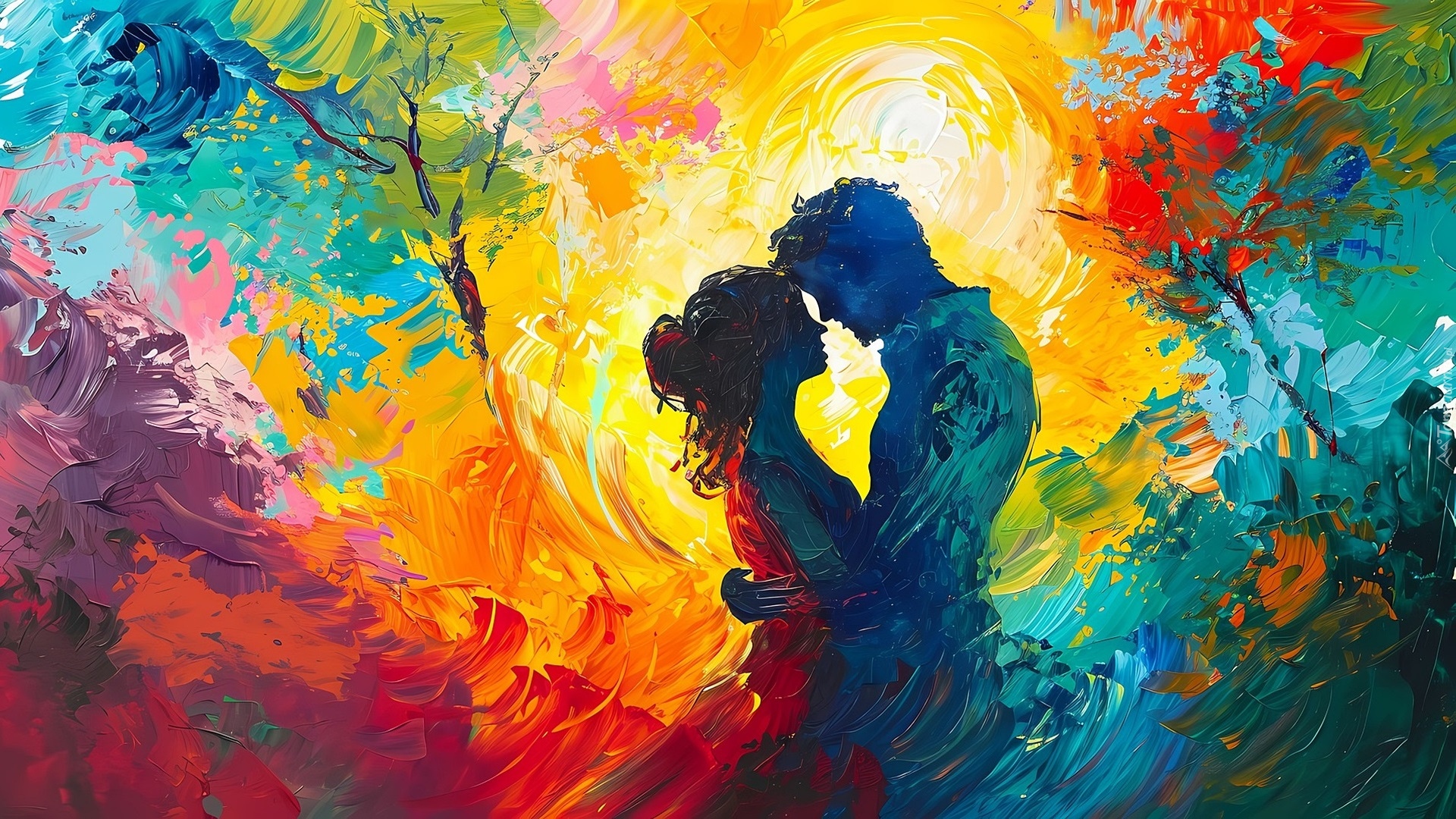 Edytor tapety: Przytulona para na kolorowym tle