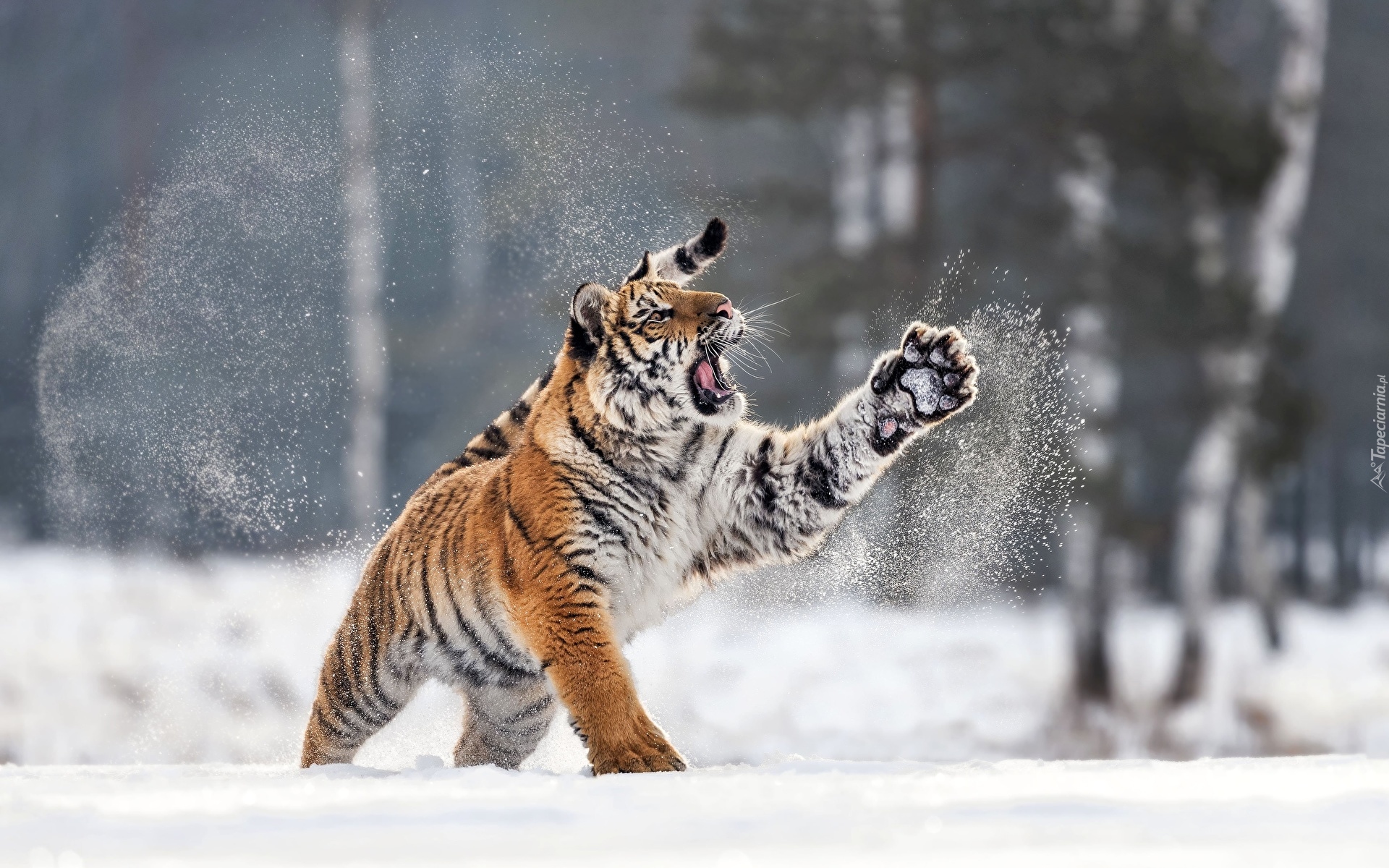 Edytor tapety: Tygrys syberyjski na śniegu
