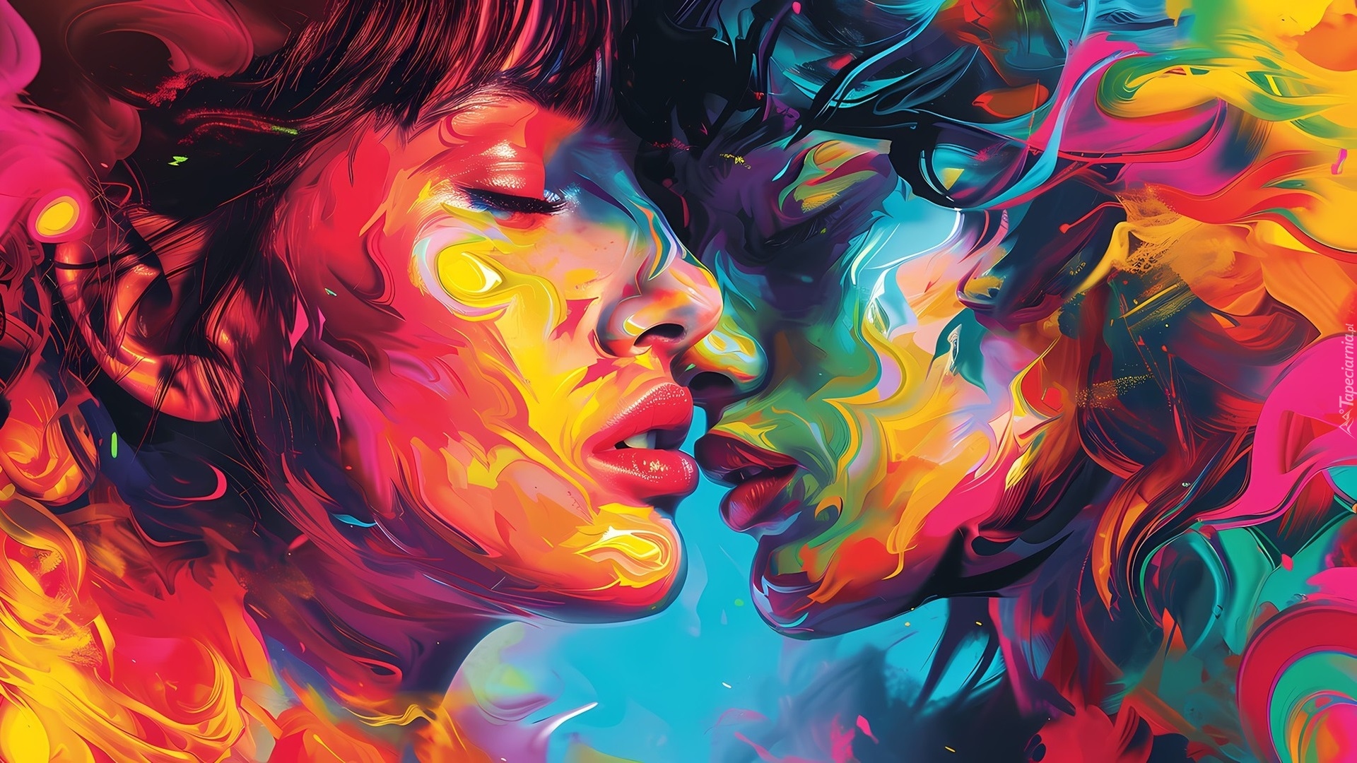 Edytor tapety: Dwie twarze w kolorowej grafice