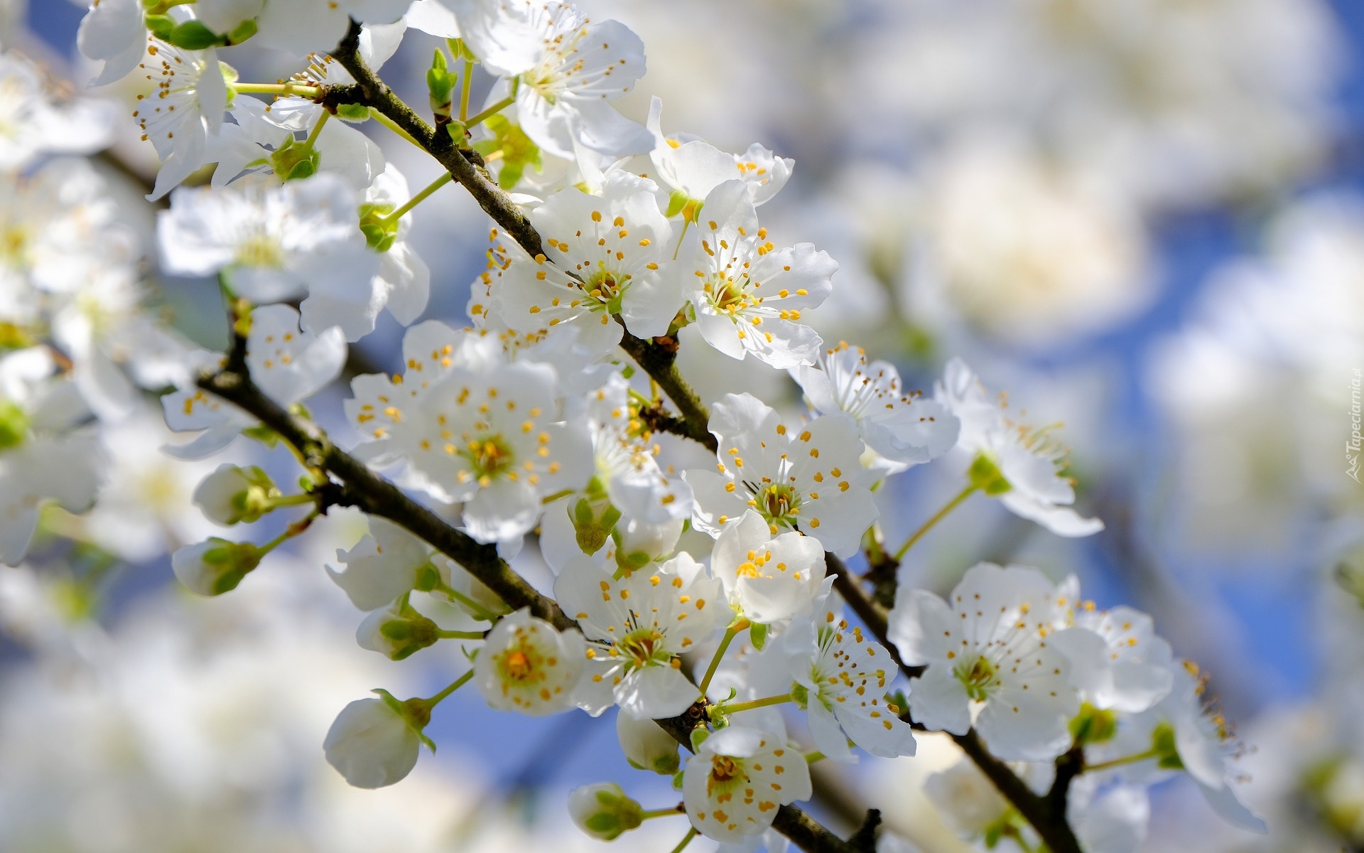 Edytor tapety: Ukwiecone białymi kwiatkami gałązki