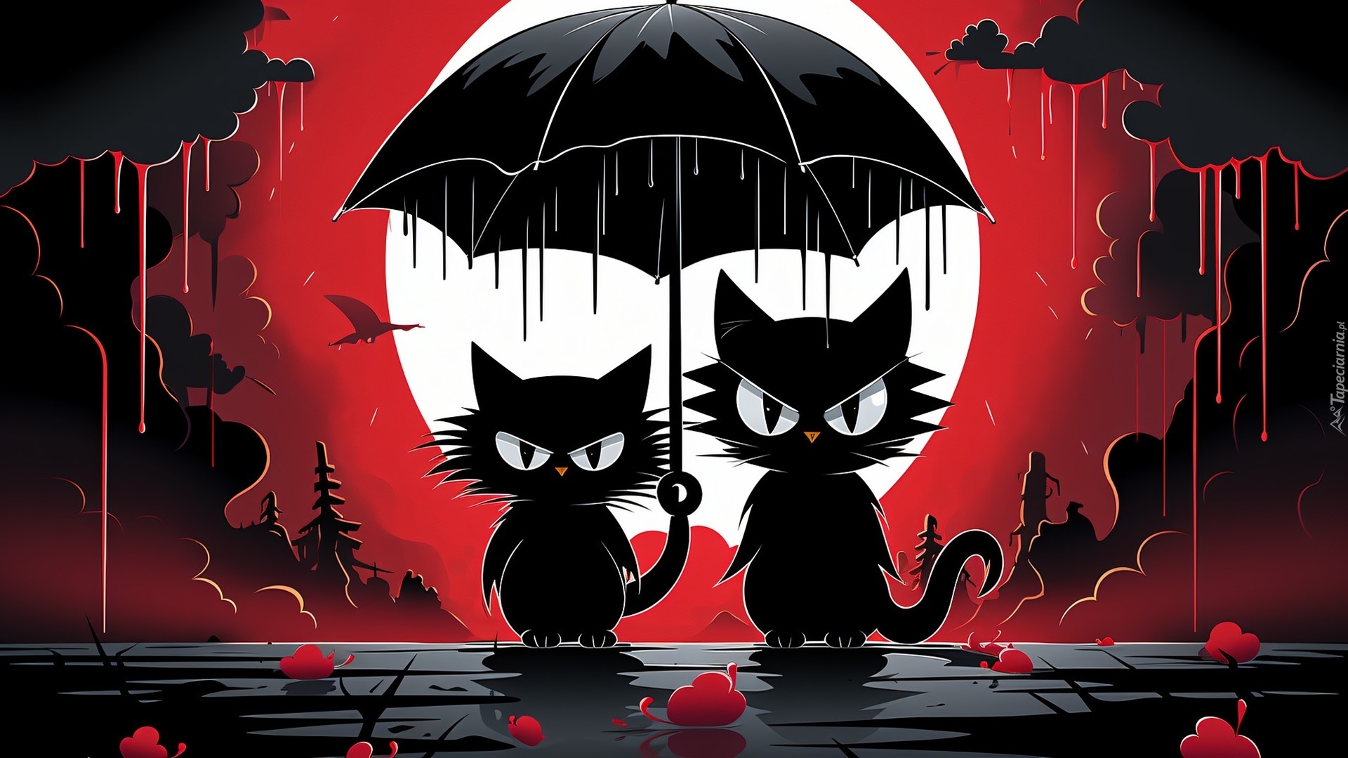 Edytor tapety: Dwa koty pod czarnym parasolem