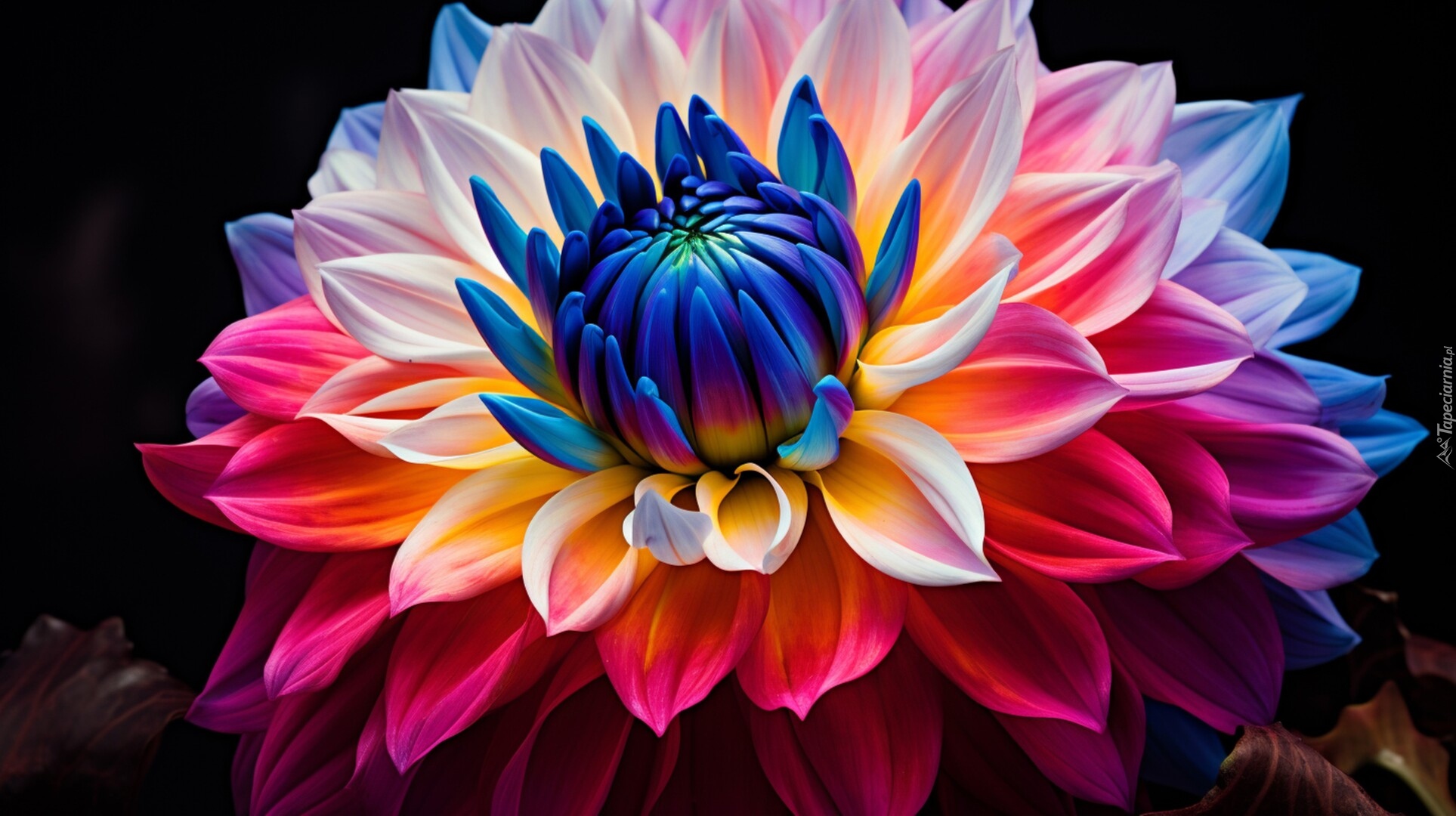 Edytor tapety: Wielokolorowa dalia na czarnym tle
