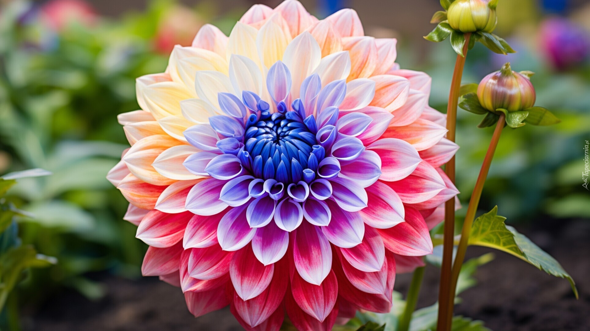 Edytor tapety: Kolorowa dalia z dwoma pąkami