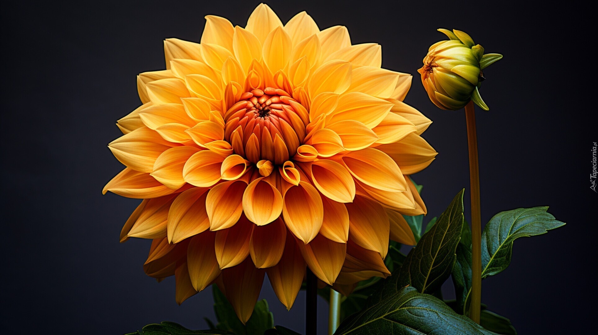 Edytor tapety: Żółta dalia z pąkiem na ciemnym tle