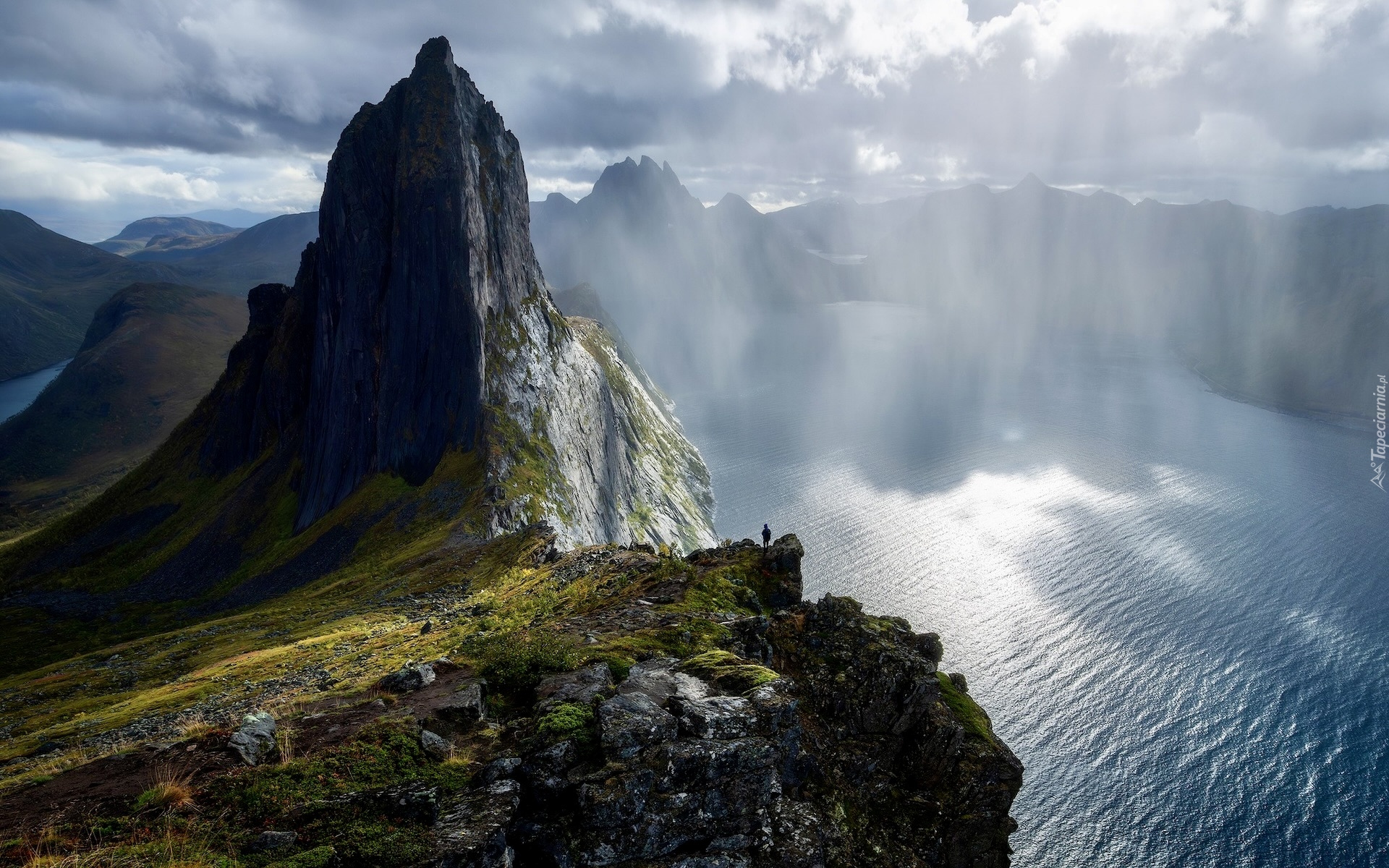 Edytor tapety: Rozświetlona Góra Segla na norweskiej wyspie Senja