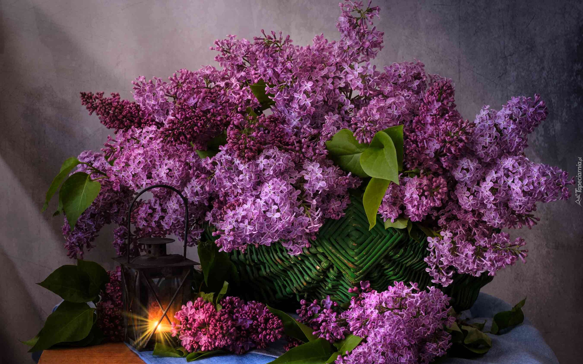 Edytor tapety: Lampion obok bzu w koszyku