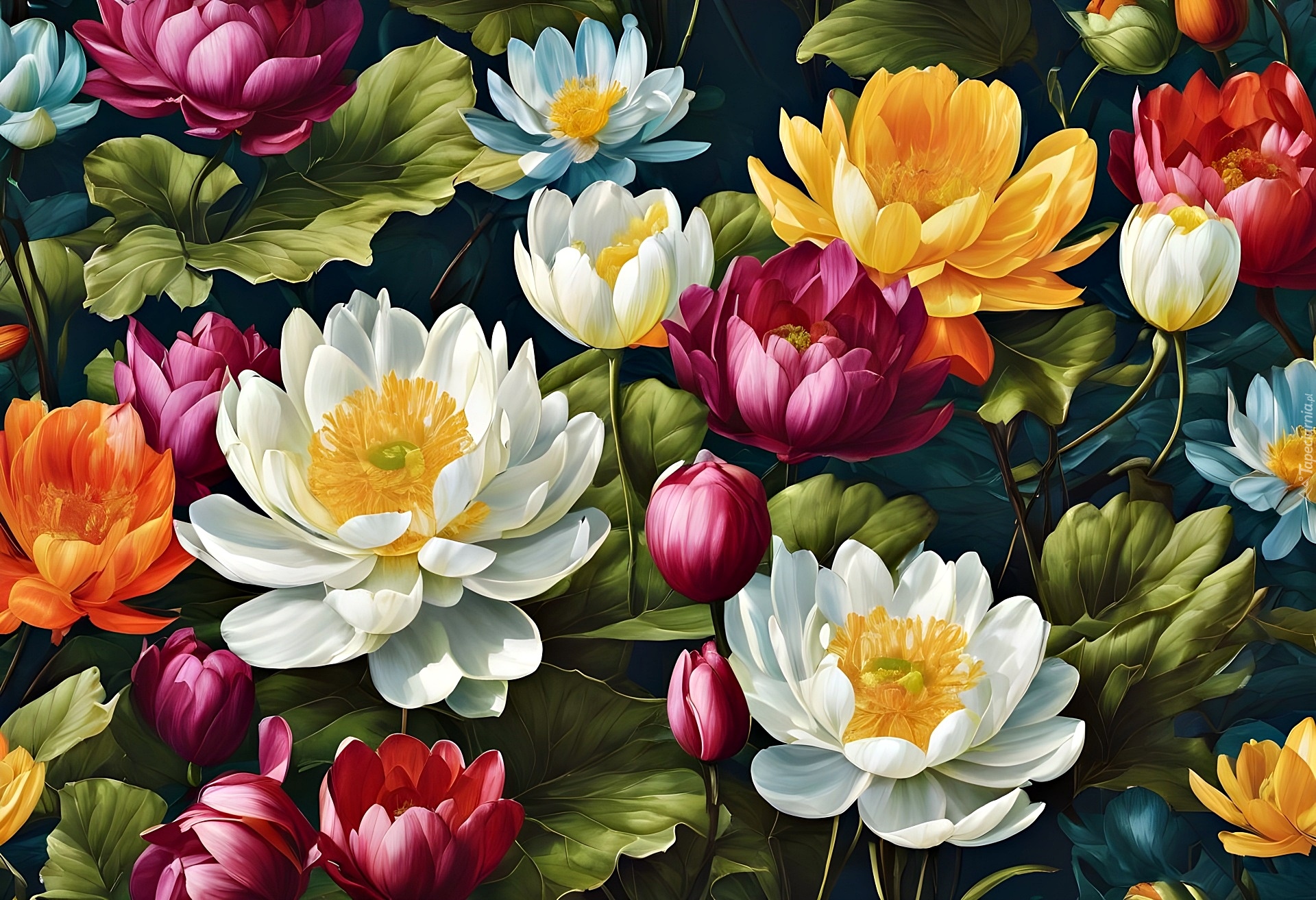 Edytor tapety: Kolorowe rozwinięte kwiaty i pąki