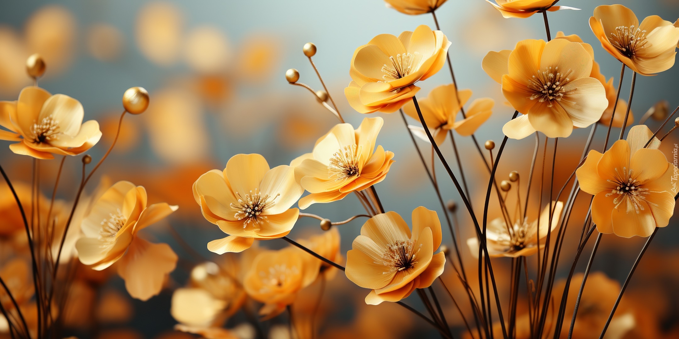 Edytor tapety: Żółte drobne kwiatki na rozmytym tle