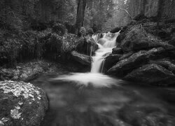 Edytor tapety: Opadłe liście na omszałych kamieniach w leśnej rzece