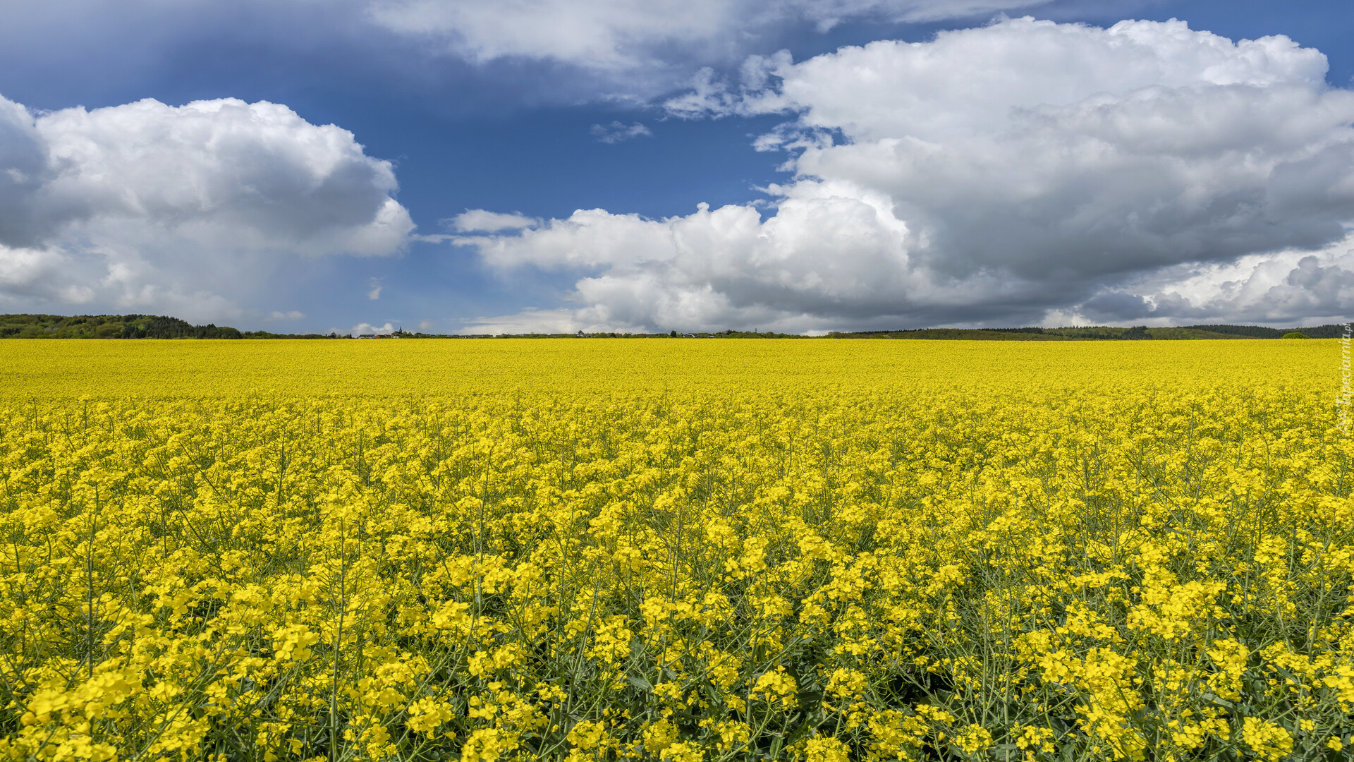 Edytor tapety: Obłoki nad polem kwitnącego rzepaku