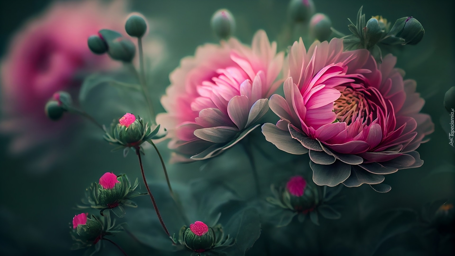 Edytor tapety: Różowe piwonie w rozkwicie na rozmytym tle