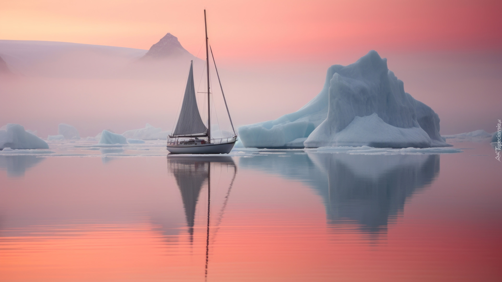 Edytor tapety: Żaglówka obok góry lodowej