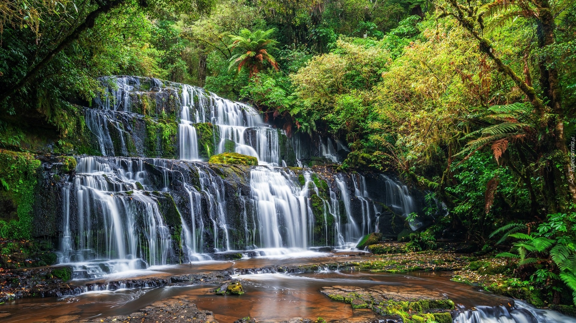Edytor tapety: Wodospad Purakaunui Fall w Nowej Zelandii