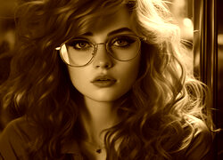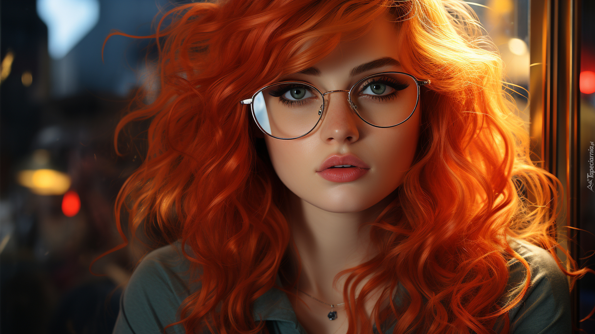Edytor tapety: Twarz rudowłosej dziewczyny w okularach