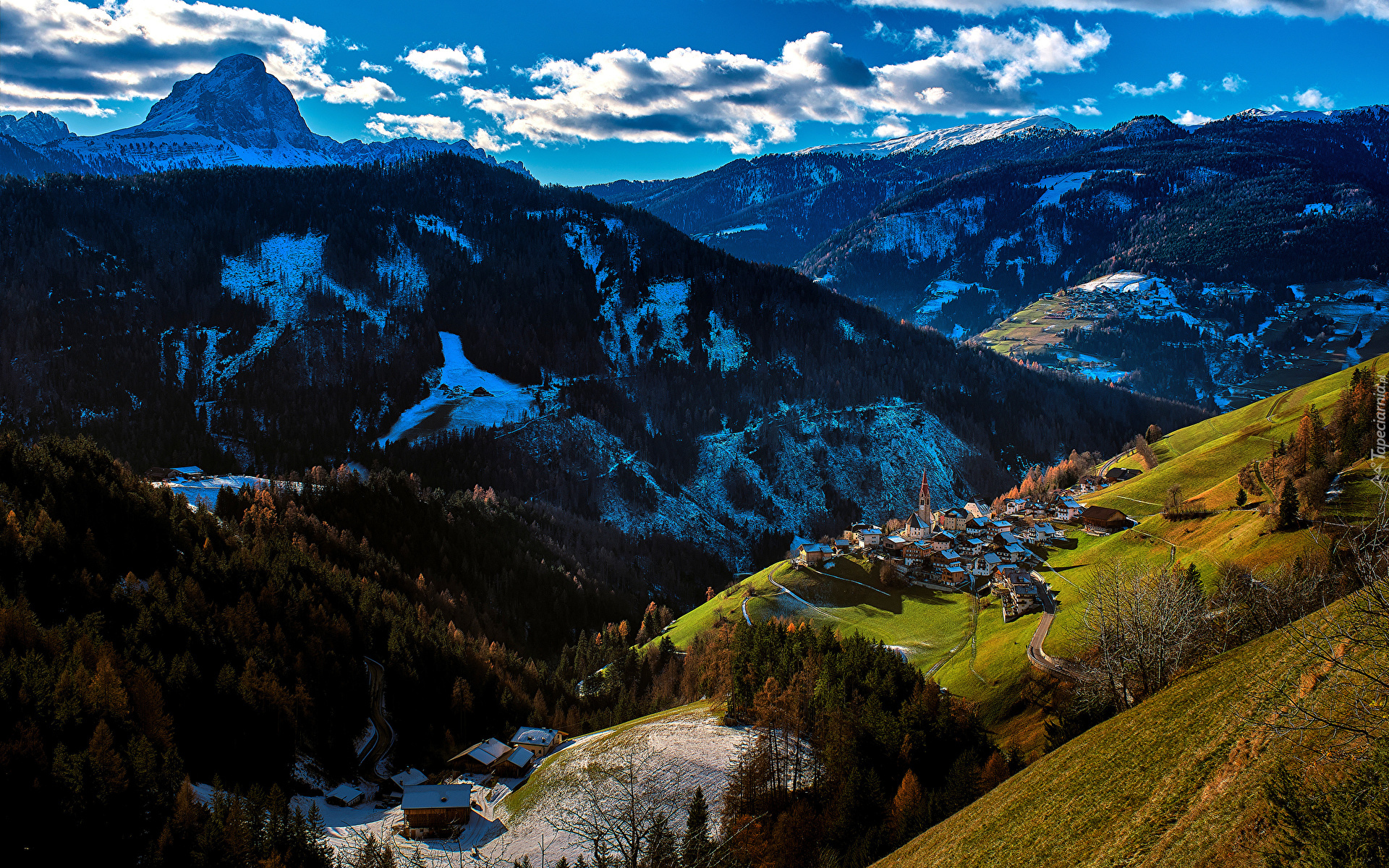 Edytor tapety: Widok ze wzgórza na wioskę w dolinie