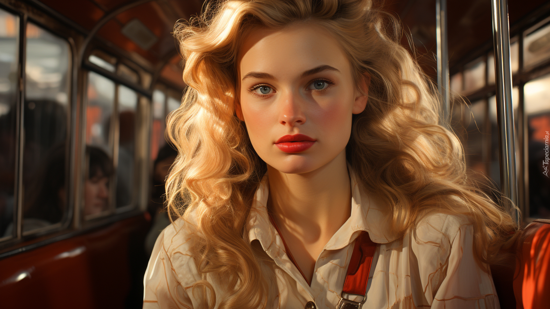 Edytor tapety: Rozświetlona twarz długowłosej blondynki