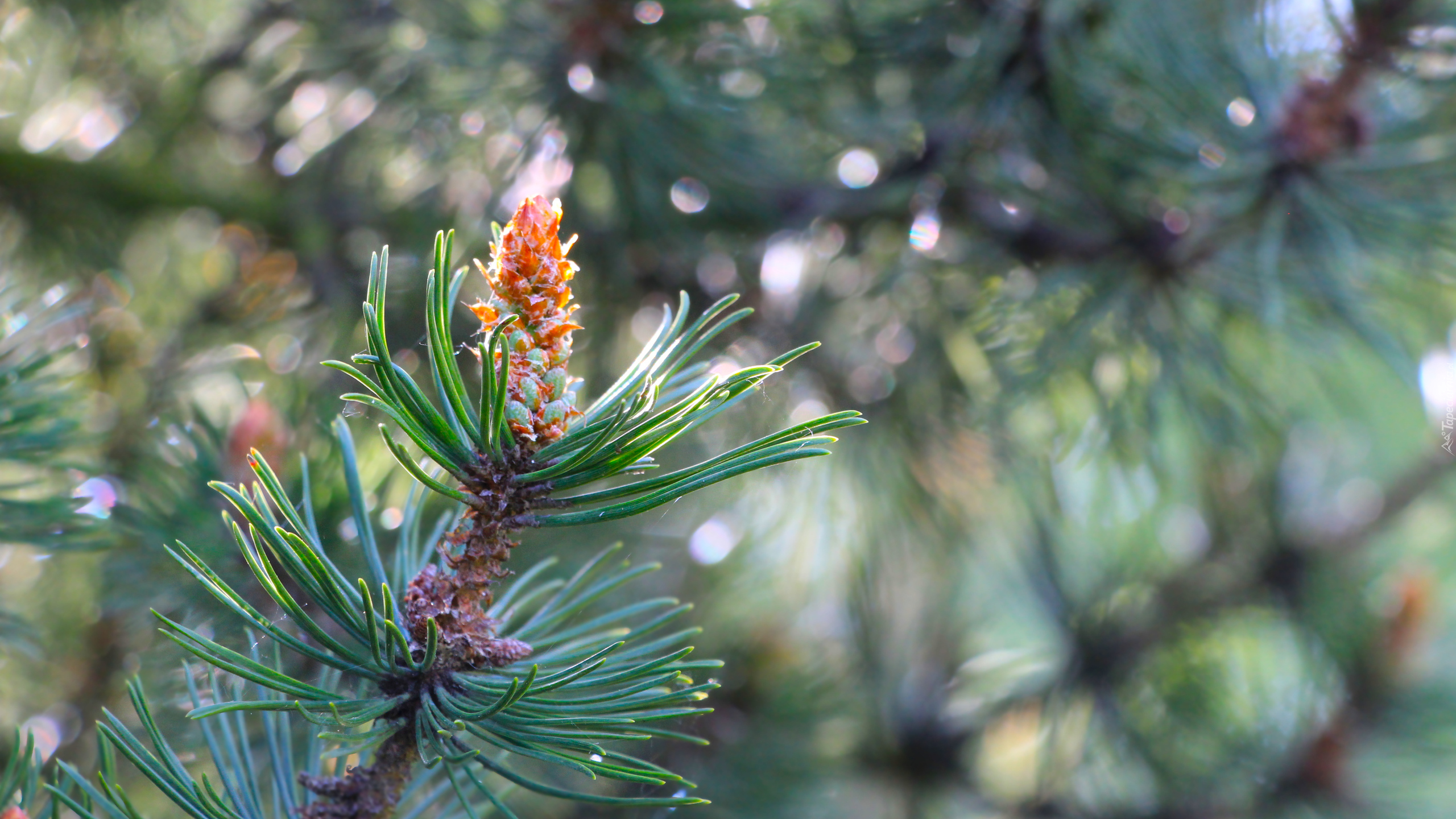 Edytor tapety: Gałązka sosnowa z młodym pędem