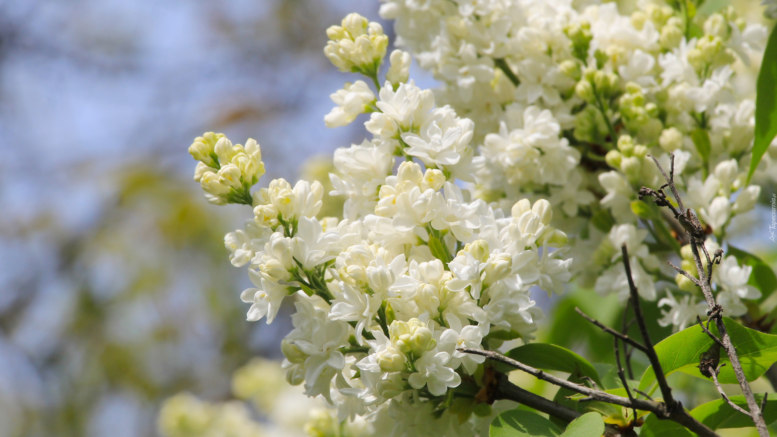 Edytor tapety: Rozświetlone gałązki białego bzu