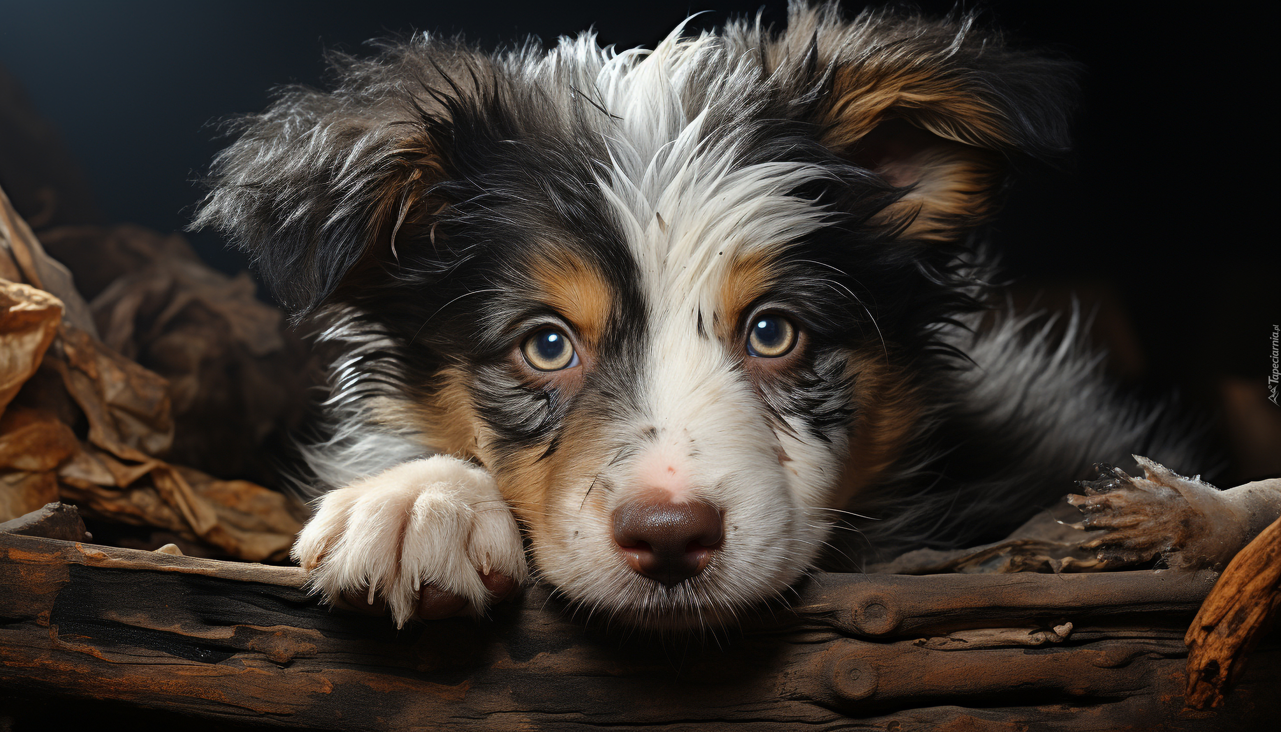Edytor tapety: Mordka psa oparta na drzewie