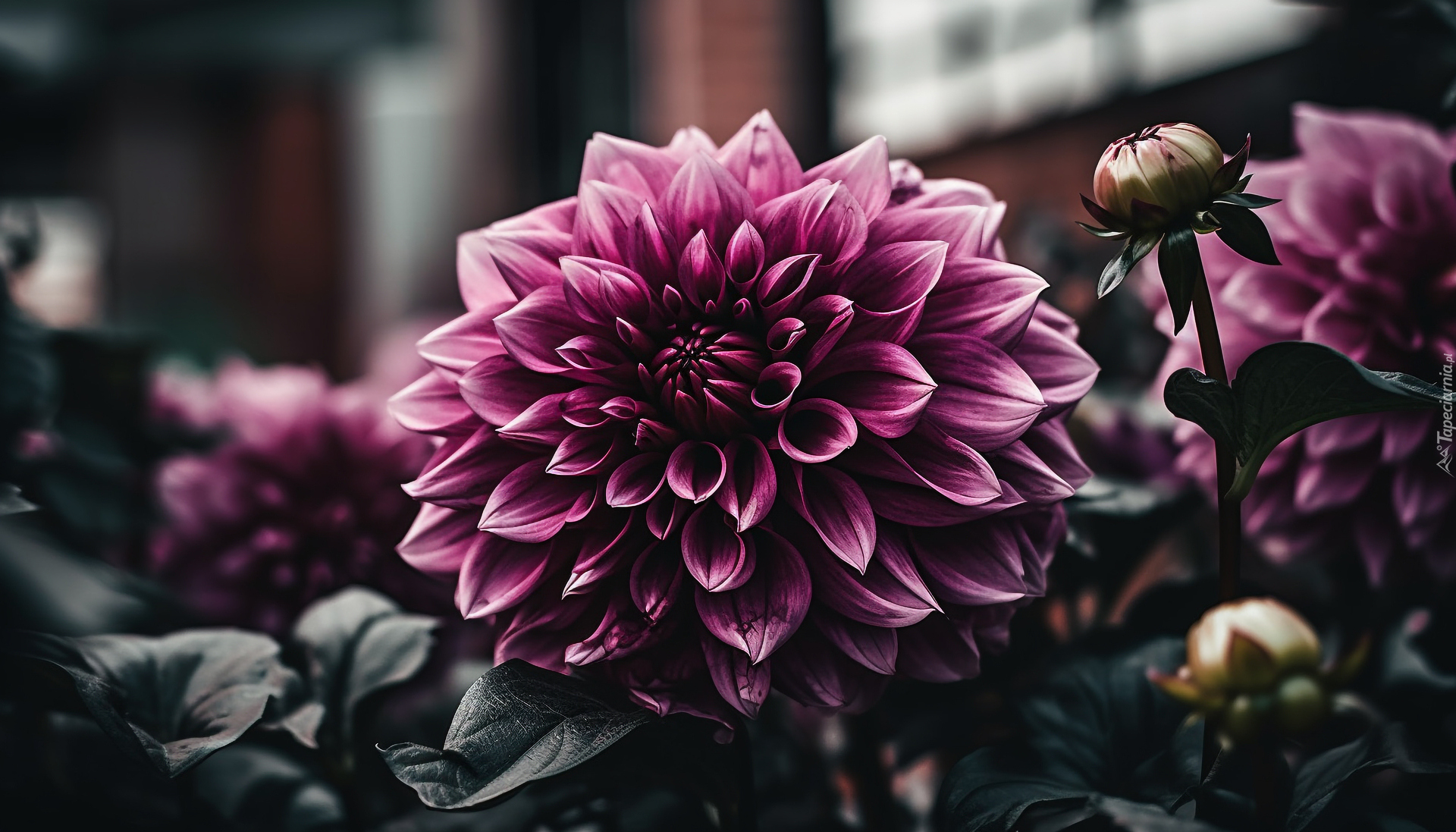 Edytor tapety: Fioletowa dalia z pąkami