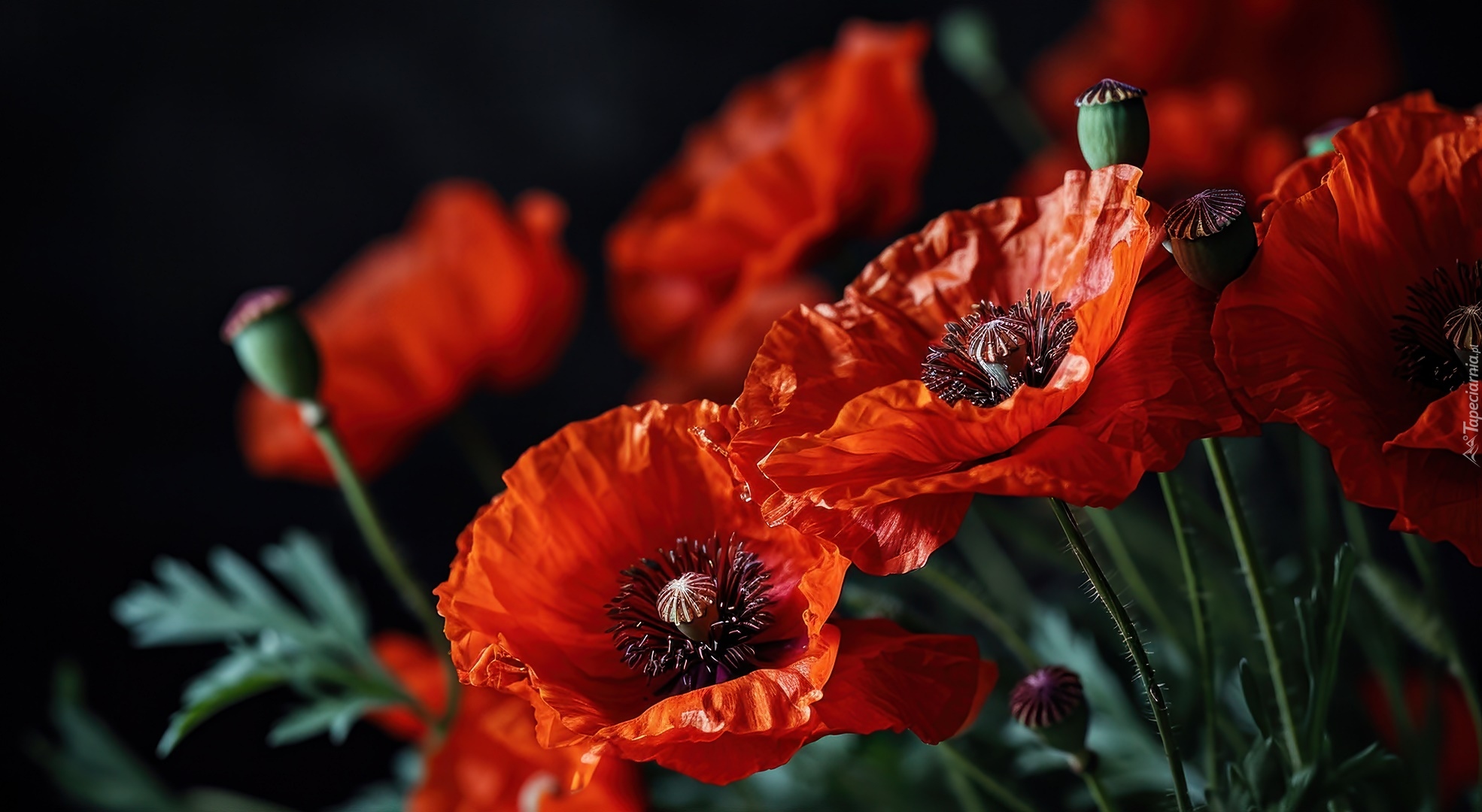 Edytor tapety: Rozświetlone maki z makówkami