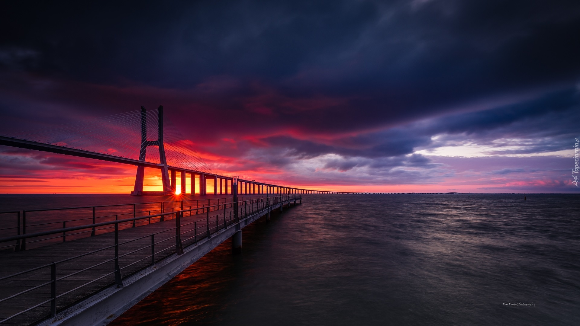 Edytor tapety: Most Vasco da Gama pod niebem zachodzącego słońca