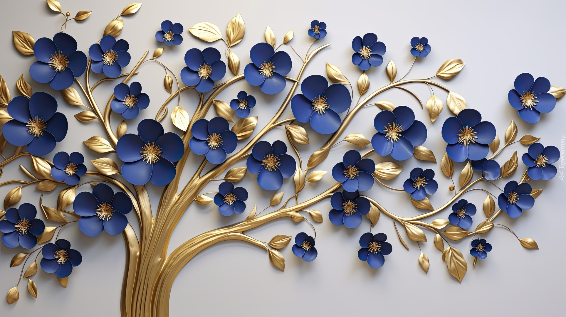 Edytor tapety: Złota gałązka z niebieskimi kwiatkami