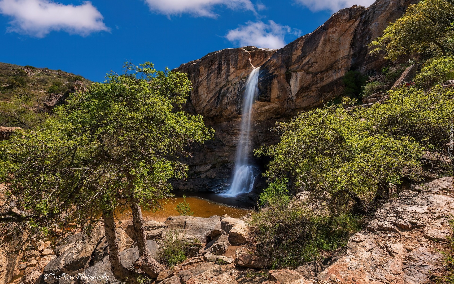 Edytor tapety: Chiva Falls na skałach w Arizonie