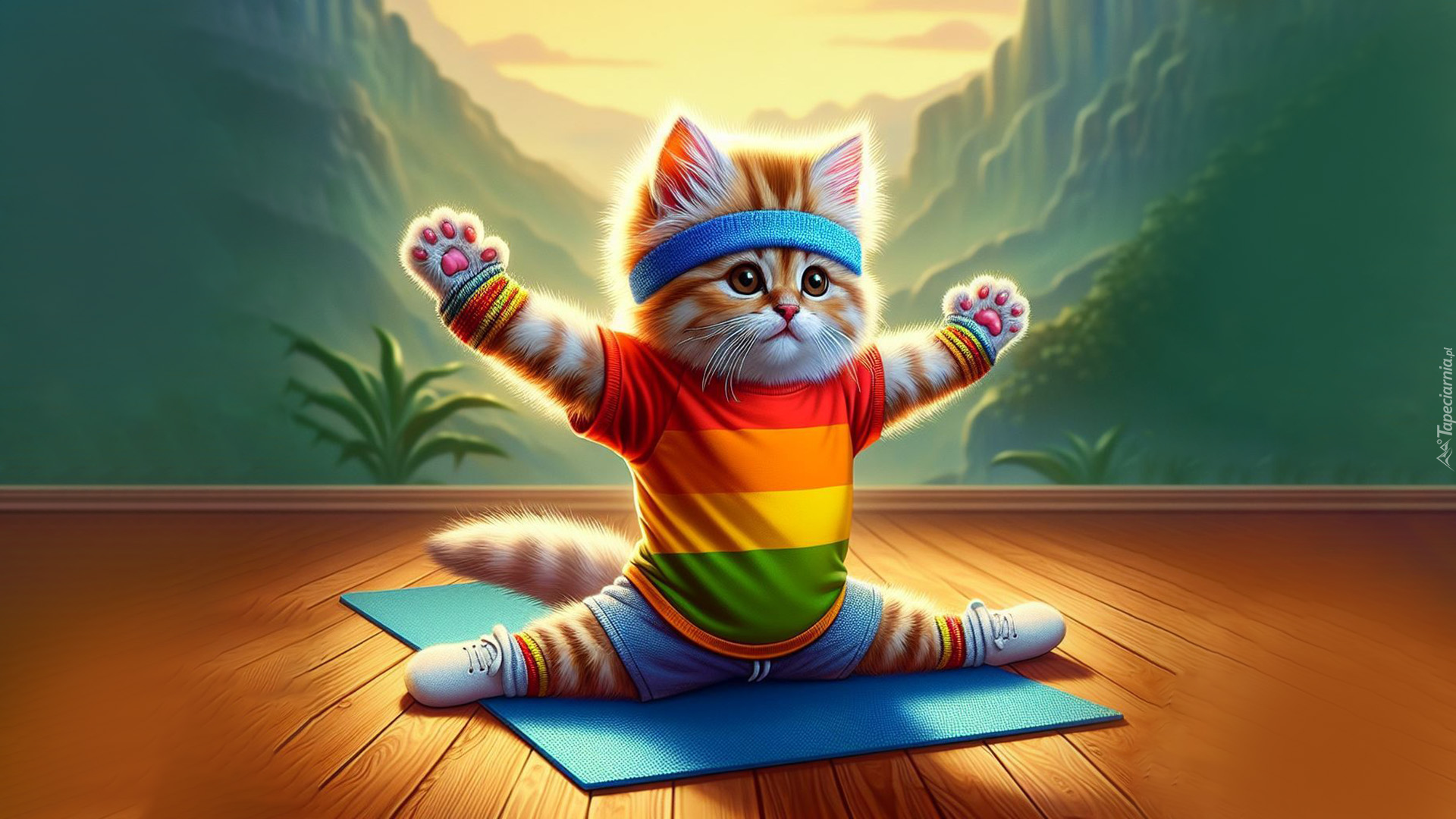 Edytor tapety: Ćwiczący kotek na macie