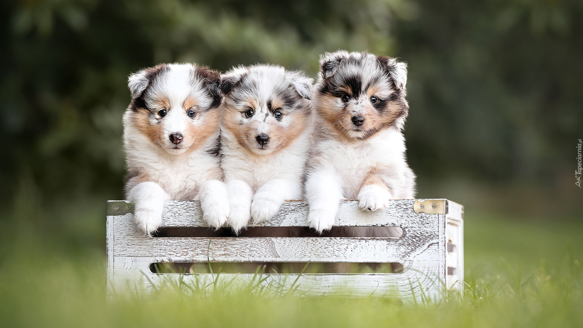 Edytor tapety: Trzy szczeniaki w skrzynce