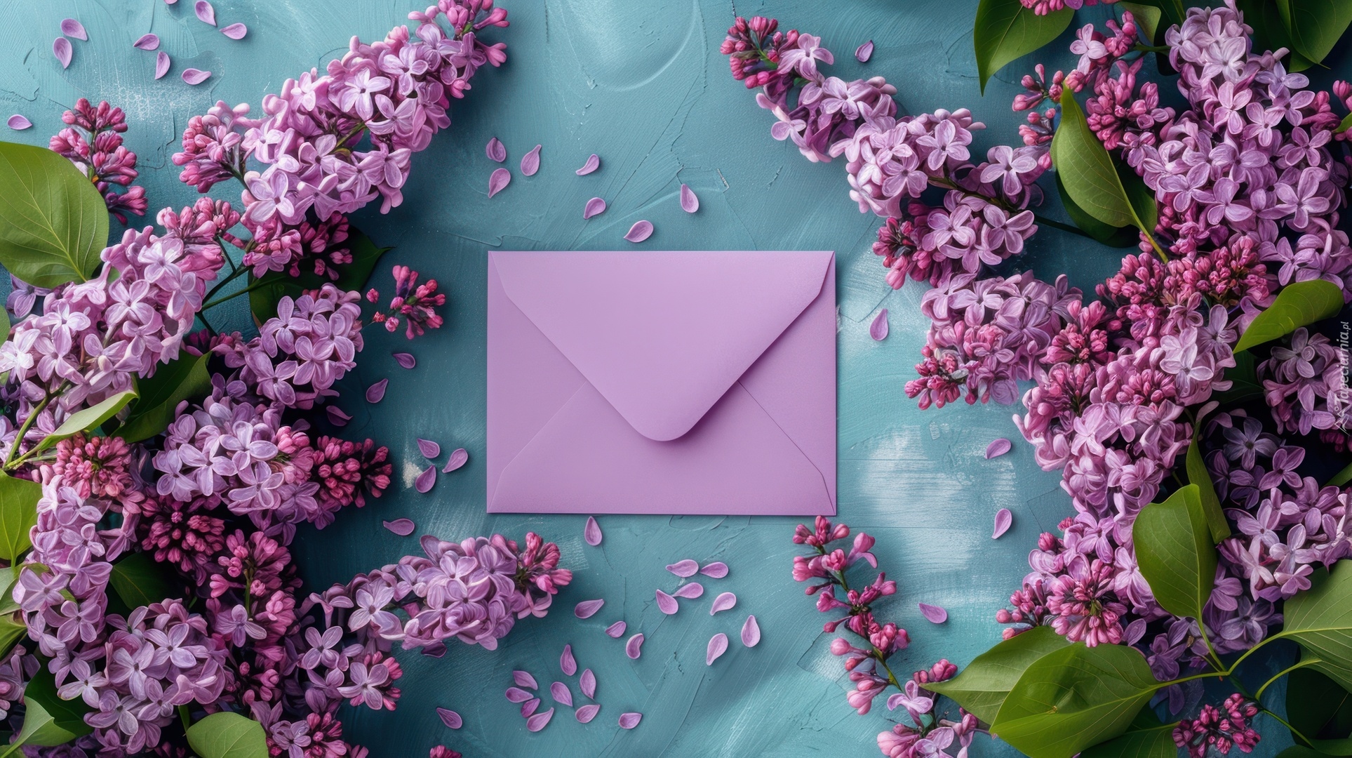 Edytor tapety: Fioletowa koperta i gałązki bzu