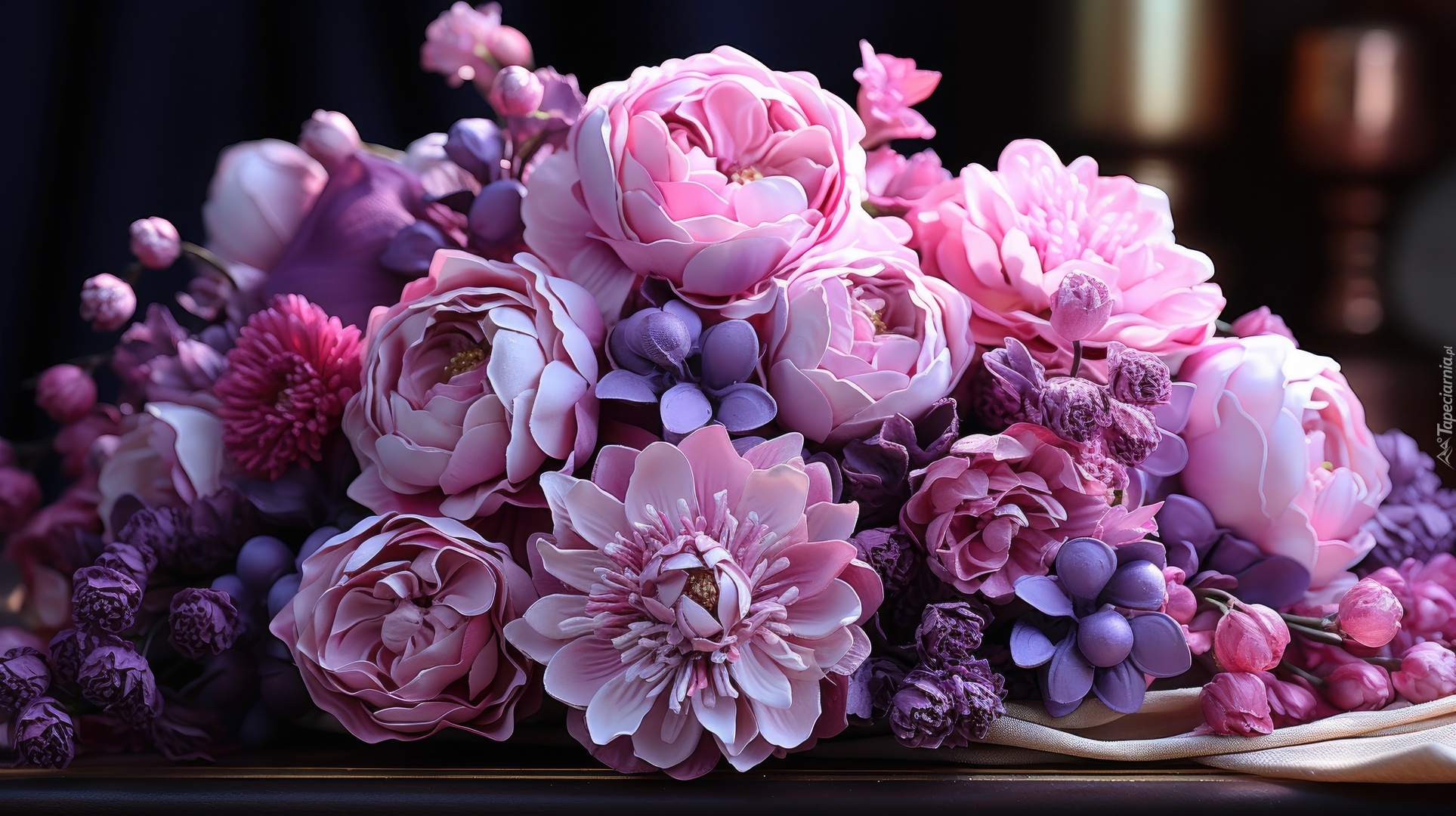 Edytor tapety: Różowe i jasnofioletowe kwiaty w grafice