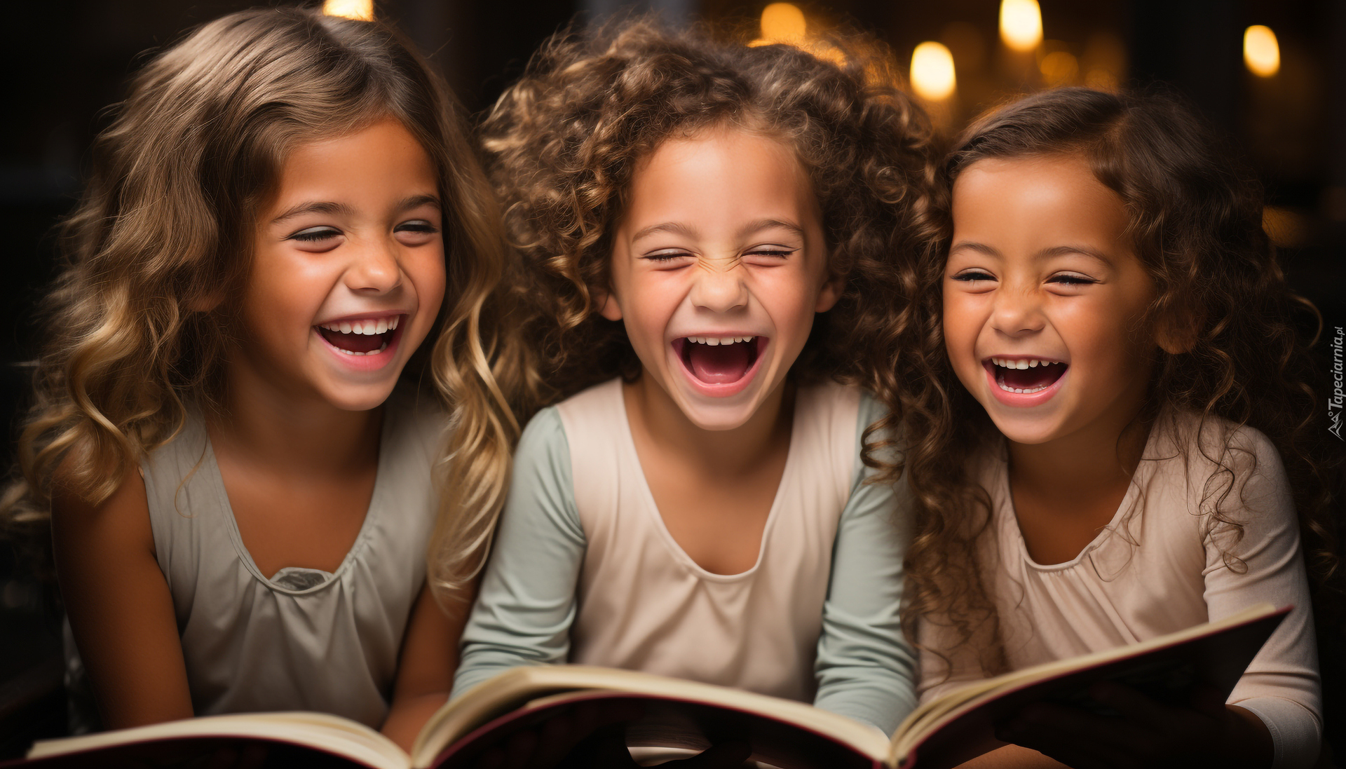 Edytor tapety: Trzy roześmiane dziewczynki z książkami