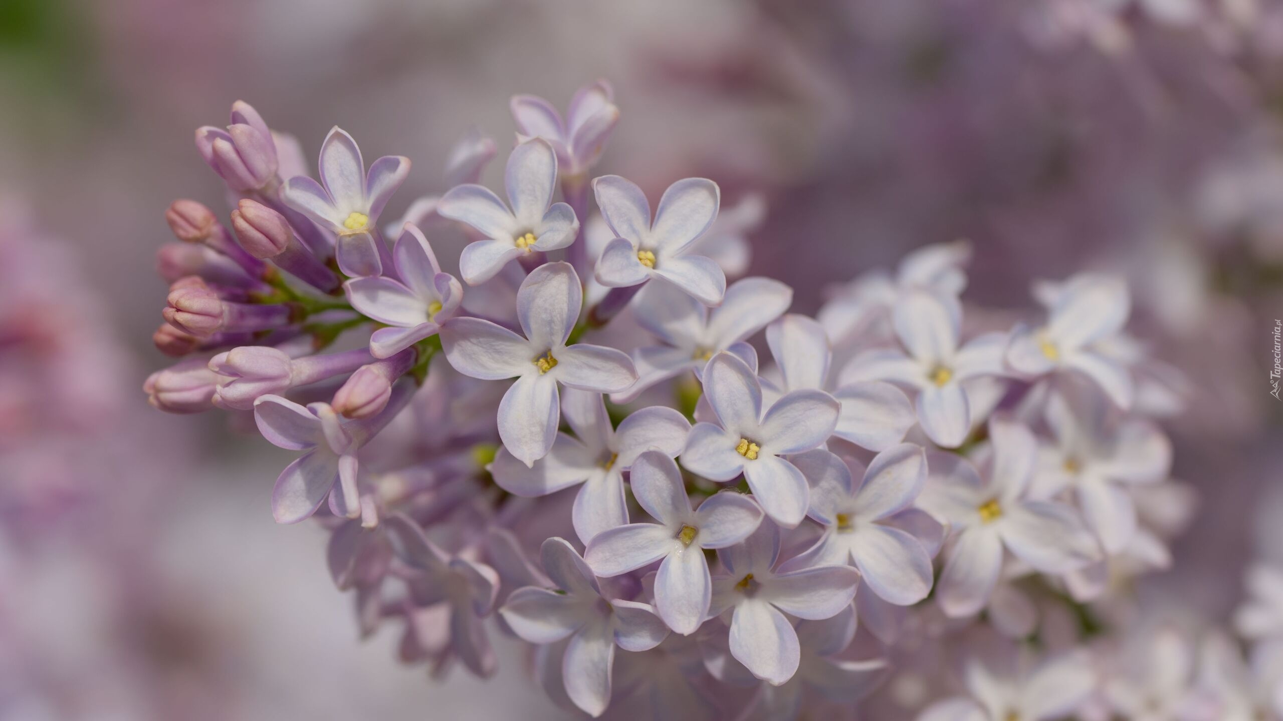 Edytor tapety: Jasnofioletowy bez na rozmytym tle w zbliżeniu