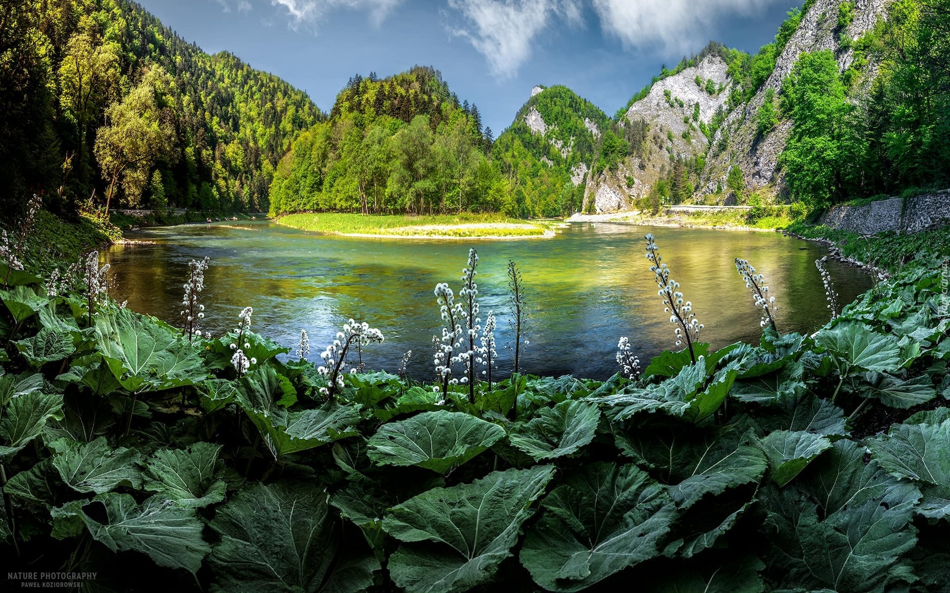 Edytor tapety: Liście i kwiaty nad rzeką Dunajec w Pieninach
