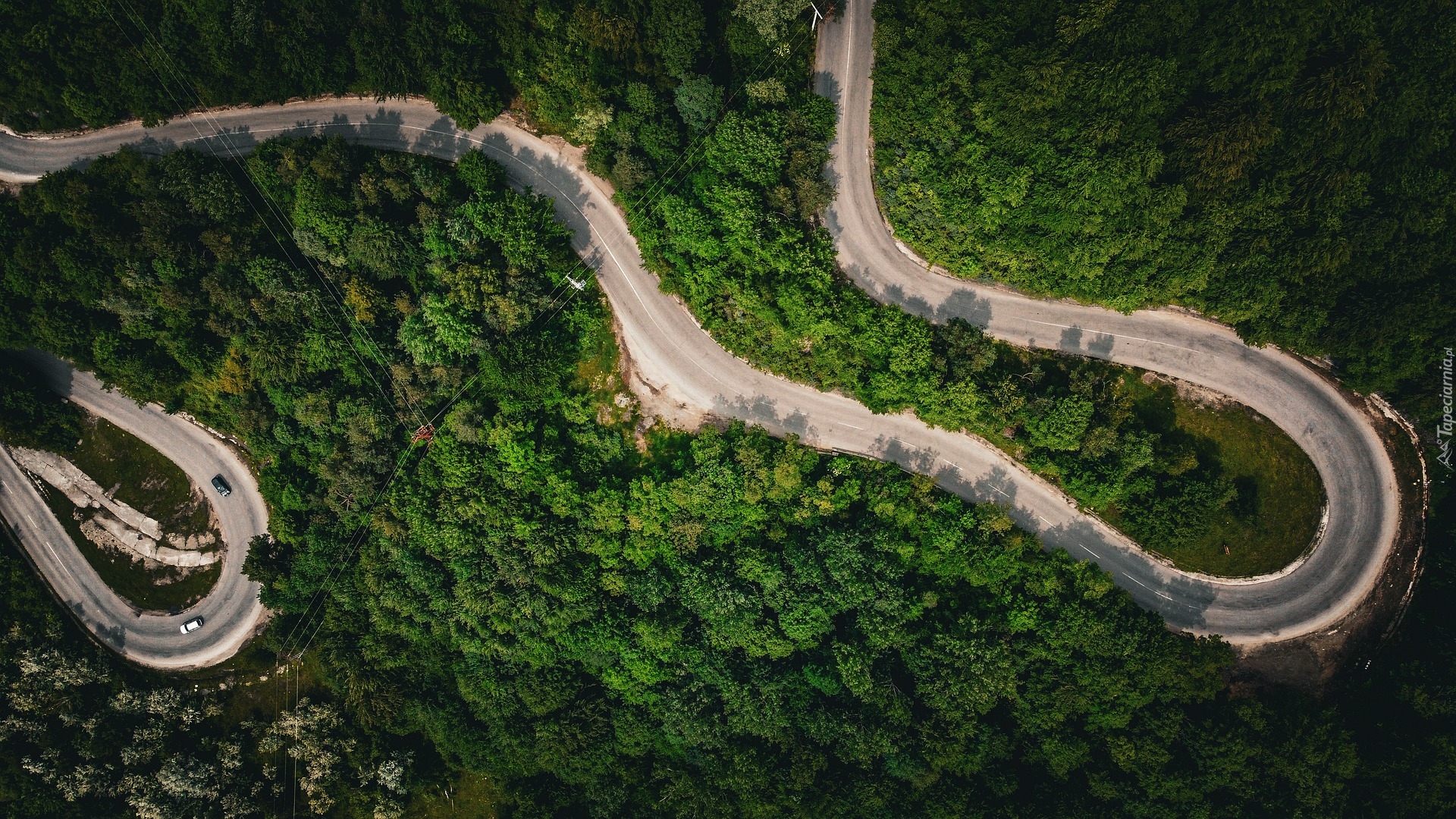 Edytor tapety: Widok z góry na krętą drogę wśród drzew