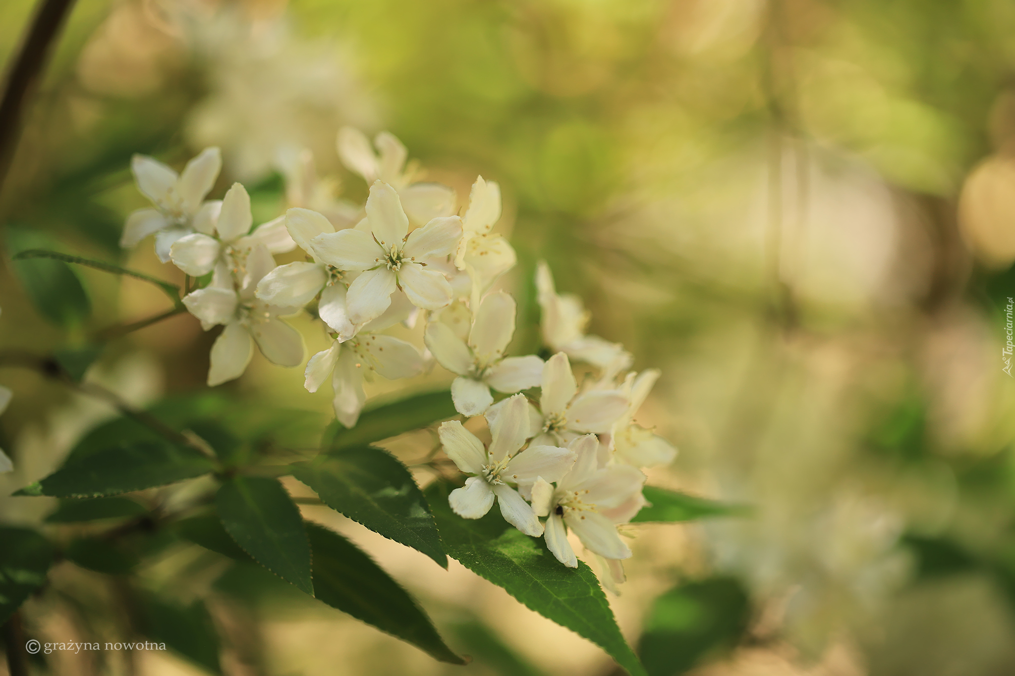 Edytor tapety: Białe drobne kwiatuszki na gałązkach