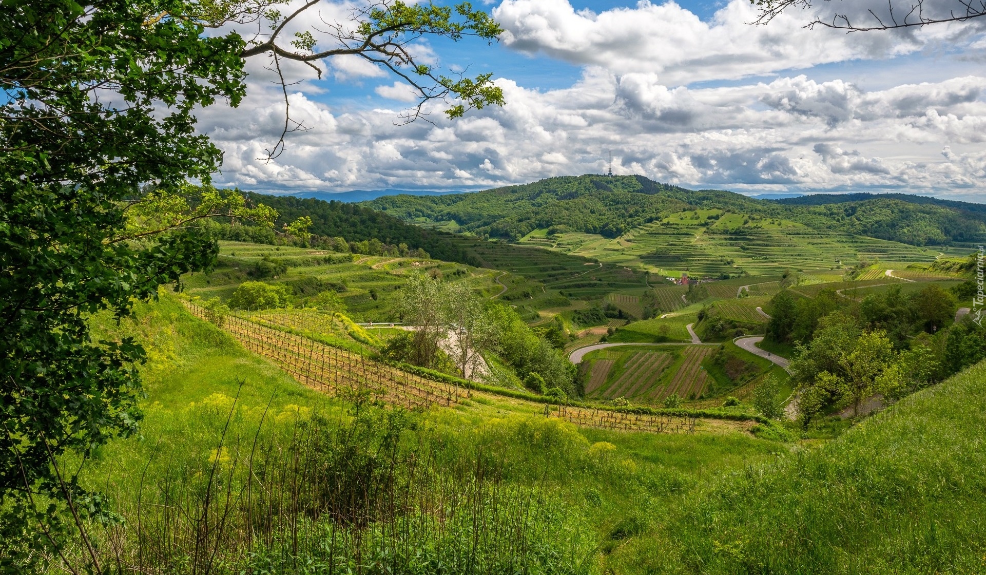Edytor tapety: Widok ze wzgórza na winnice w Kaiserstuhl