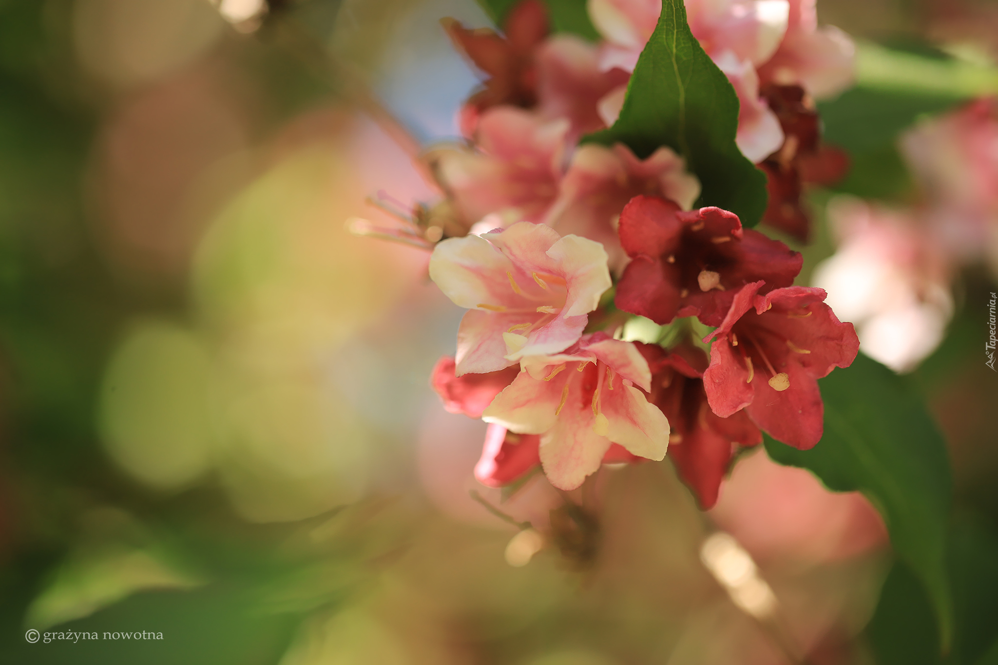 Edytor tapety: Krzewuszka na rozmytym tle