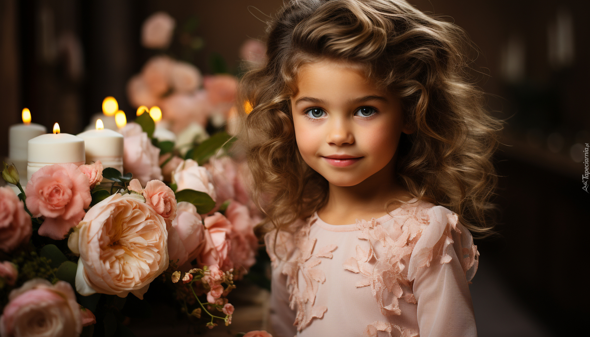 Edytor tapety: Dziewczynka obok kwiatów i świec