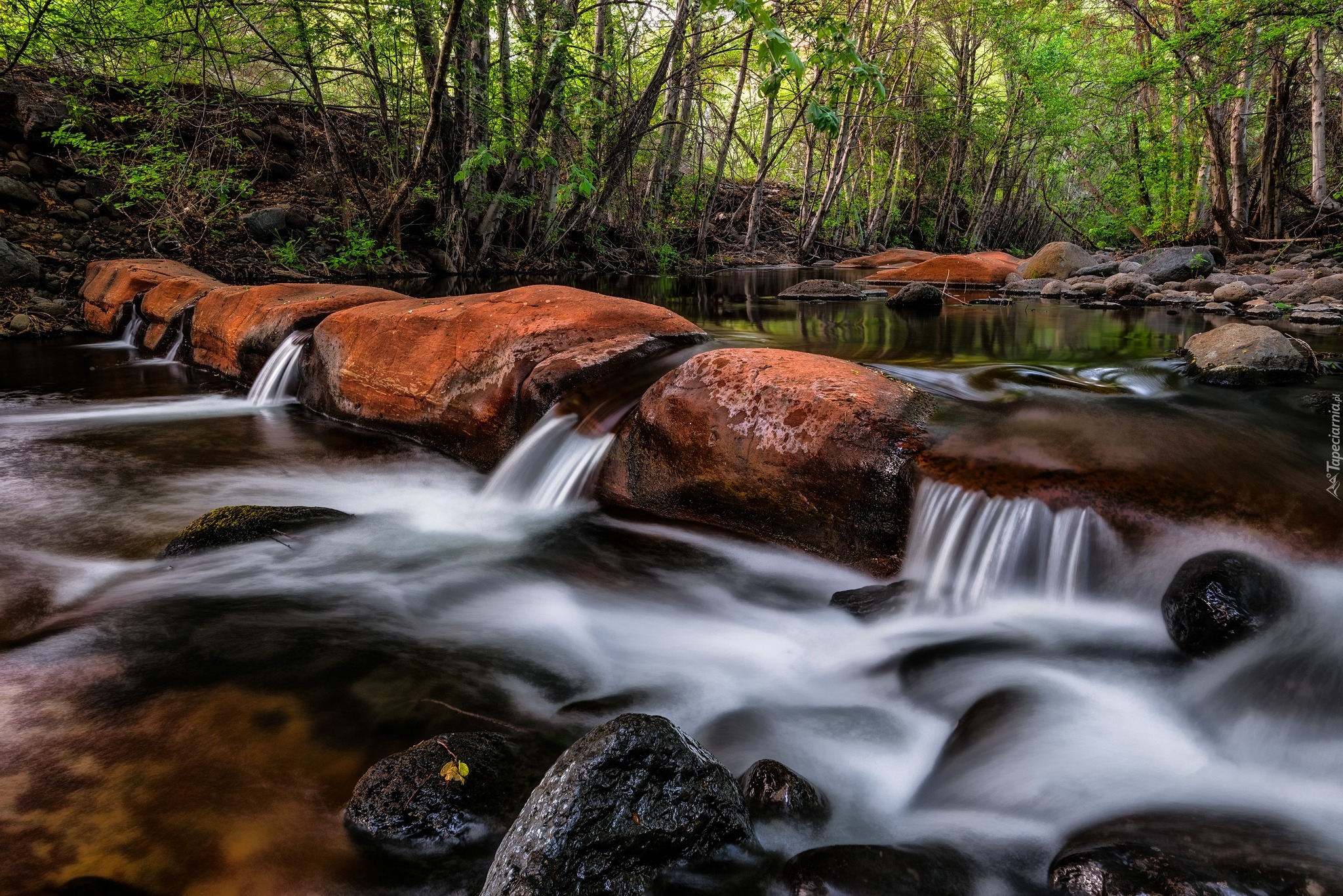 Edytor tapety: Głazy na leśnej rzece Beaver Creek