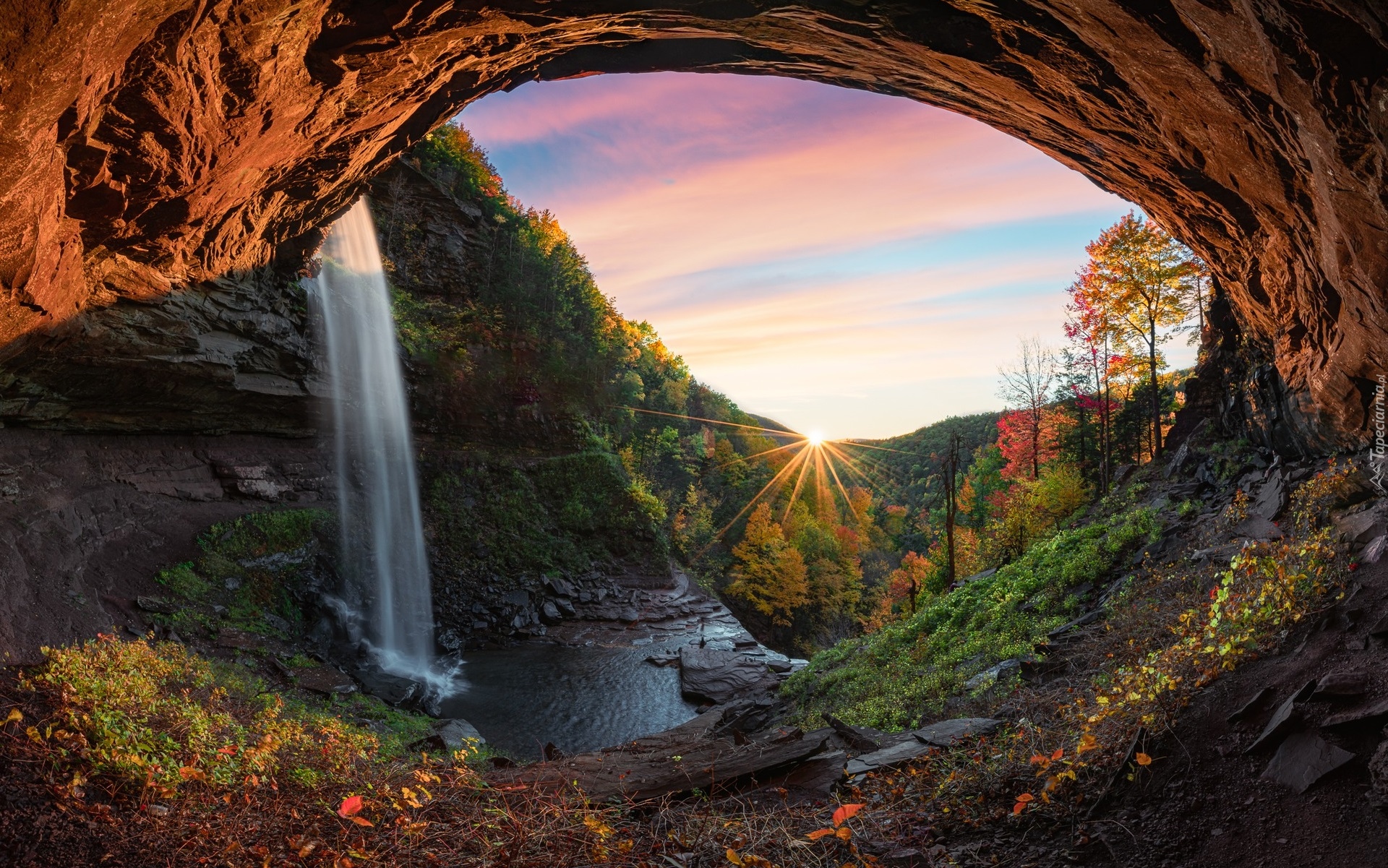 Edytor tapety: Widok z jaskini na wodospad Kaaterskill Falls