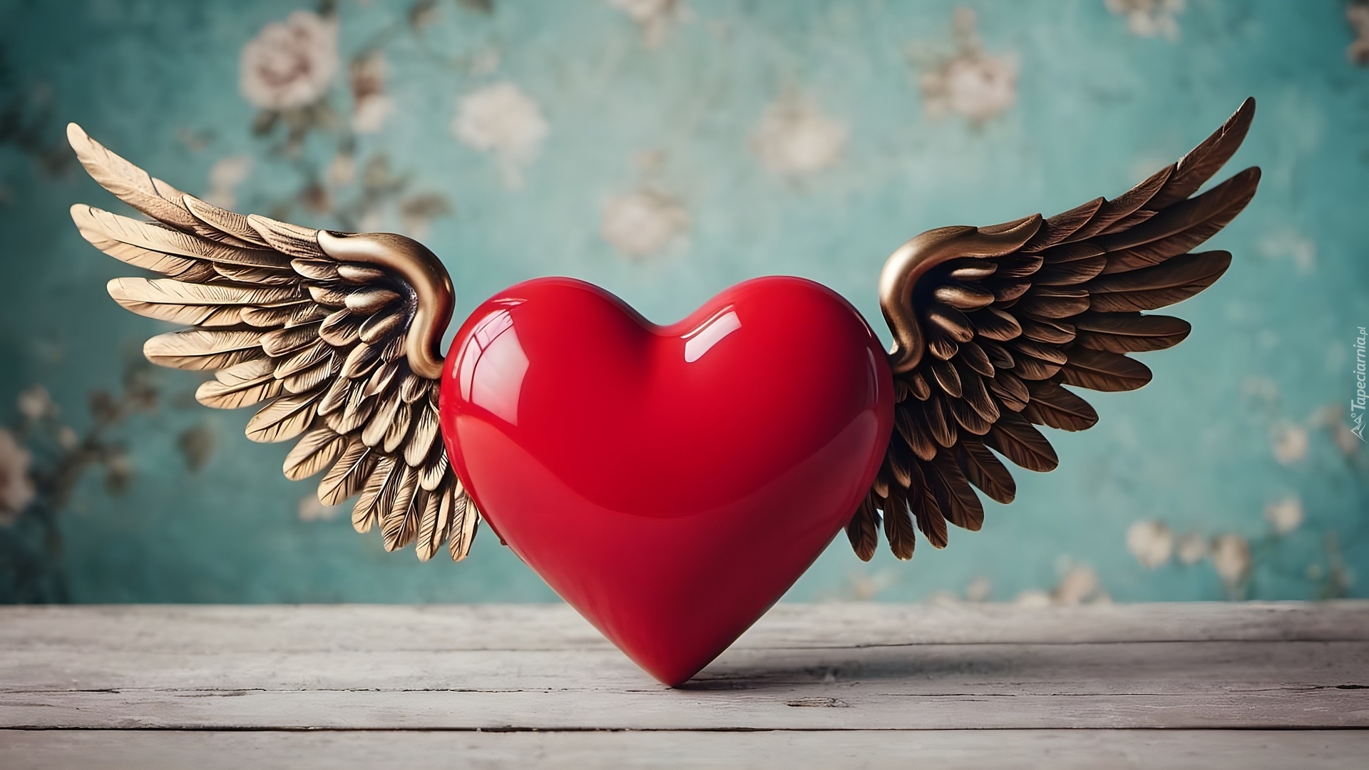 Edytor tapety: Uskrzydlone serce na deskach