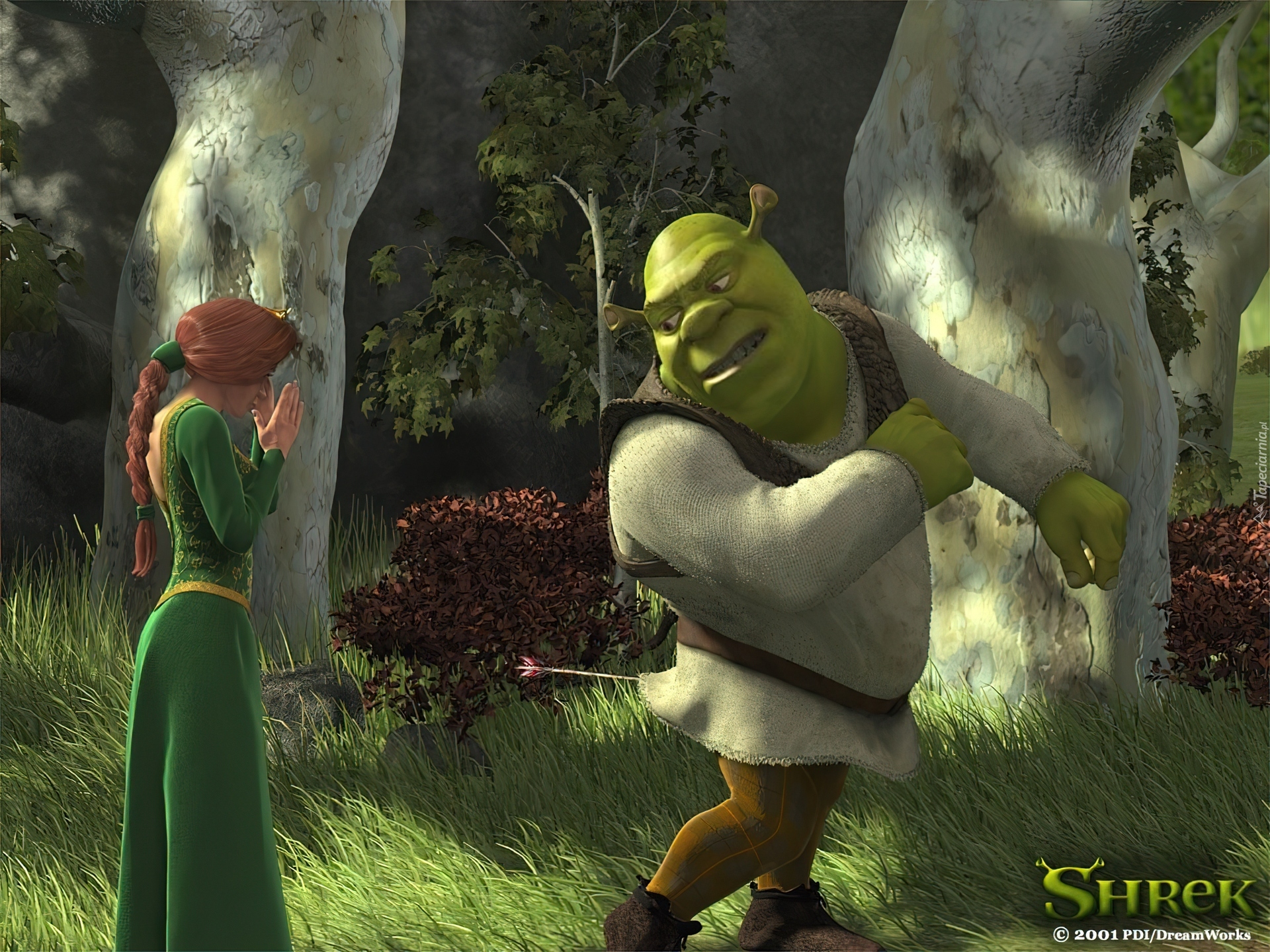 Edytor tapety: Shrek 1, Fiona, ogr, drzewa