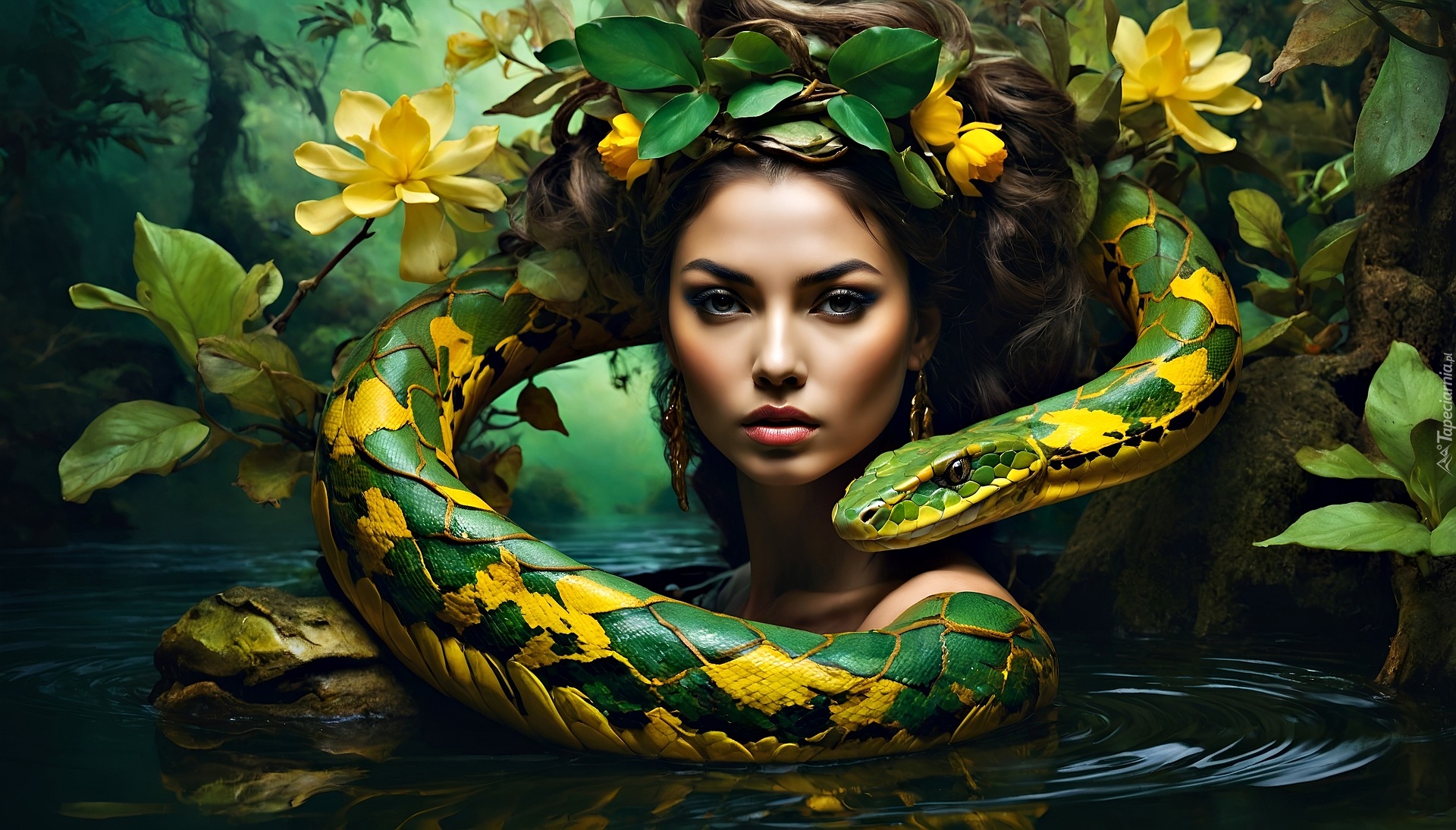 Edytor tapety: Kobieta z wężem zanurzona w wodzie