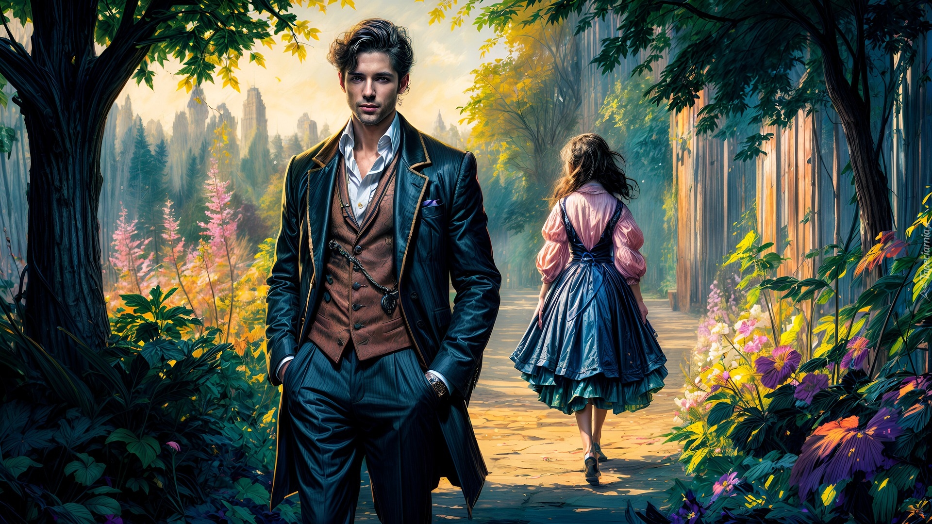 Edytor tapety: Para na ścieżce idąca w przeciwnym kierunku