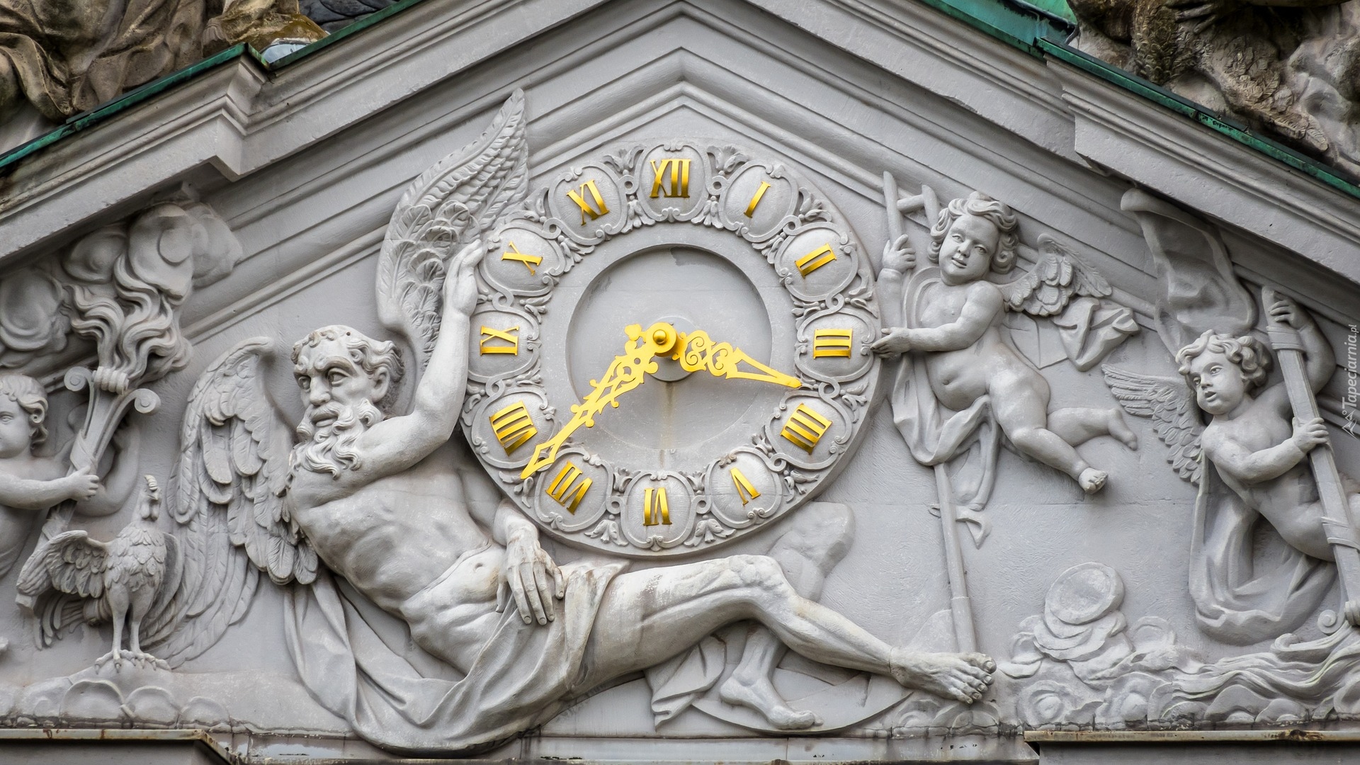 Edytor tapety: Anioły i zegar na płaskorzeźbie
