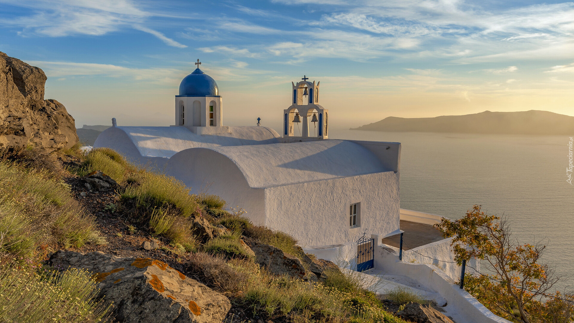 Edytor tapety: Kaplica Agiaa Theoskepasti na wyspie Santorini