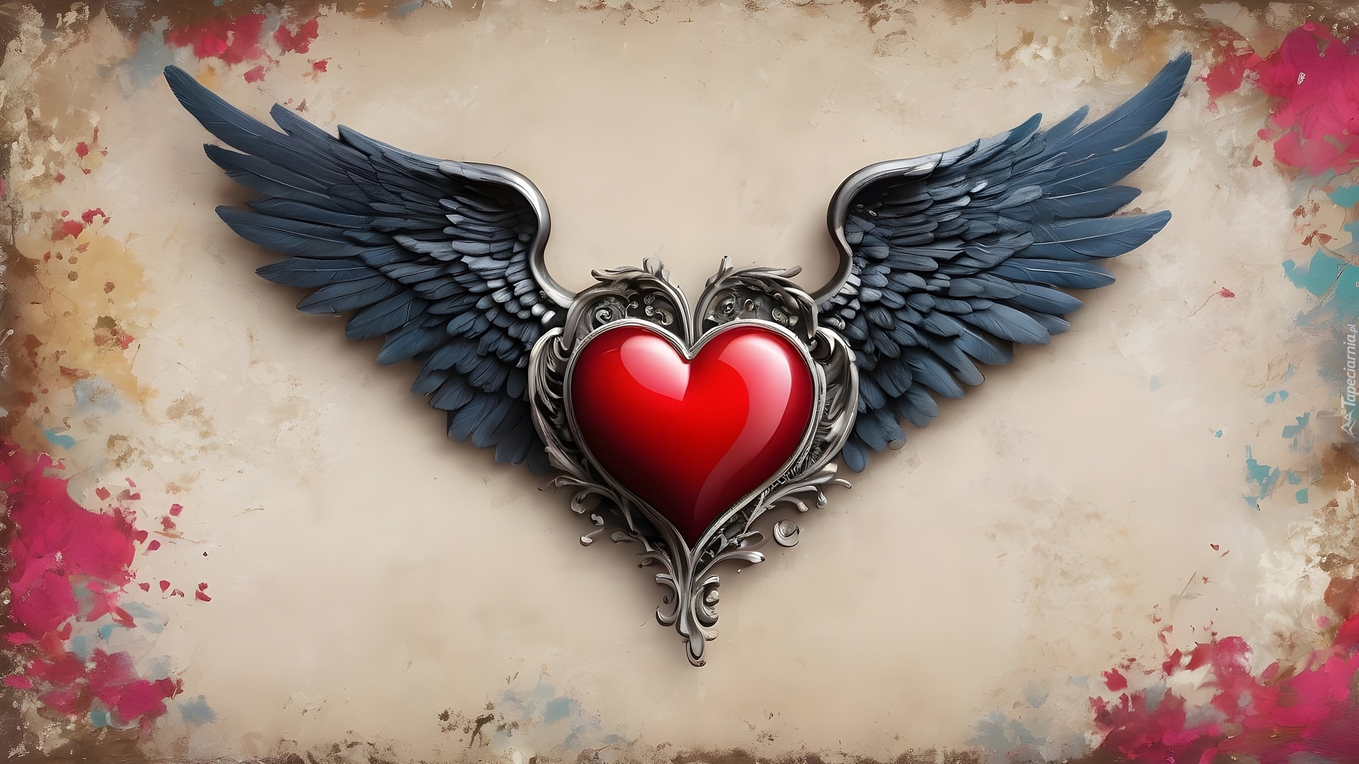 Edytor tapety: Serce z czarnymi skrzydłami na tle ściany