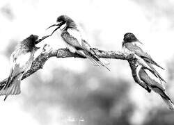 Edytor tapety: Cztery żołny pszczołojady na gałęzi
